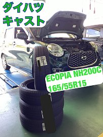 みなさんこんにちは! 福山市 神辺町 フジグラン神辺店入口にあります、 タイヤ館神辺店です! 作業事例のご紹介です~ ダイハツ キャスト タイヤ交換しました! 本日はタイヤの溝が減っていたため お客様と相談をし、ご購入いただきました。 今回ご購入頂きました商品は 165/55R15 ECOPIA NH200Cで...