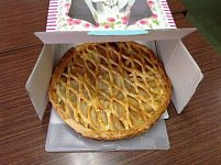 こんにちは。 昨日、またいつものお客様に差し入れを頂きました。 アップルパイです。見て下さい。美味しそうでしょ! 店長がすかさず食べていました。なぜか5人いるんですが4等分で、 切って食べました。美味しかったです。 いつもありがとうございます。