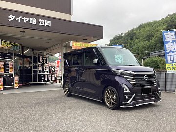ルークスハイウェイスター ホイール&タイヤ交換ローダウン作業。