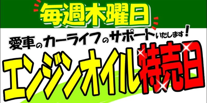 毎週木曜日はエンジンオイル特売日!お得なパックがさらにお得になるステキな日♫ オイル交換もタイヤ館笠岡店にお任せください!