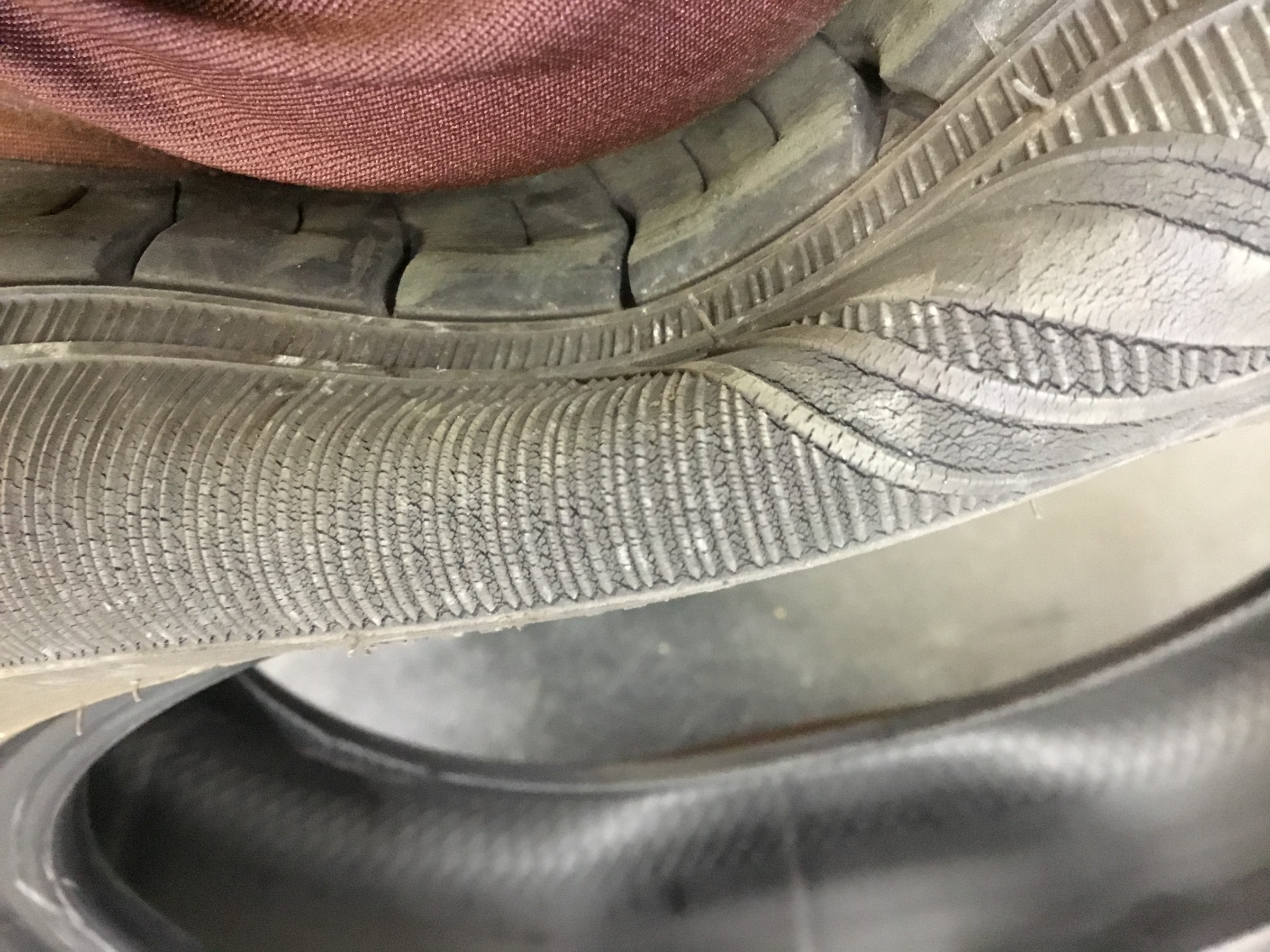 タイヤを上から押してみるとこんなにもひび割れが現れます。