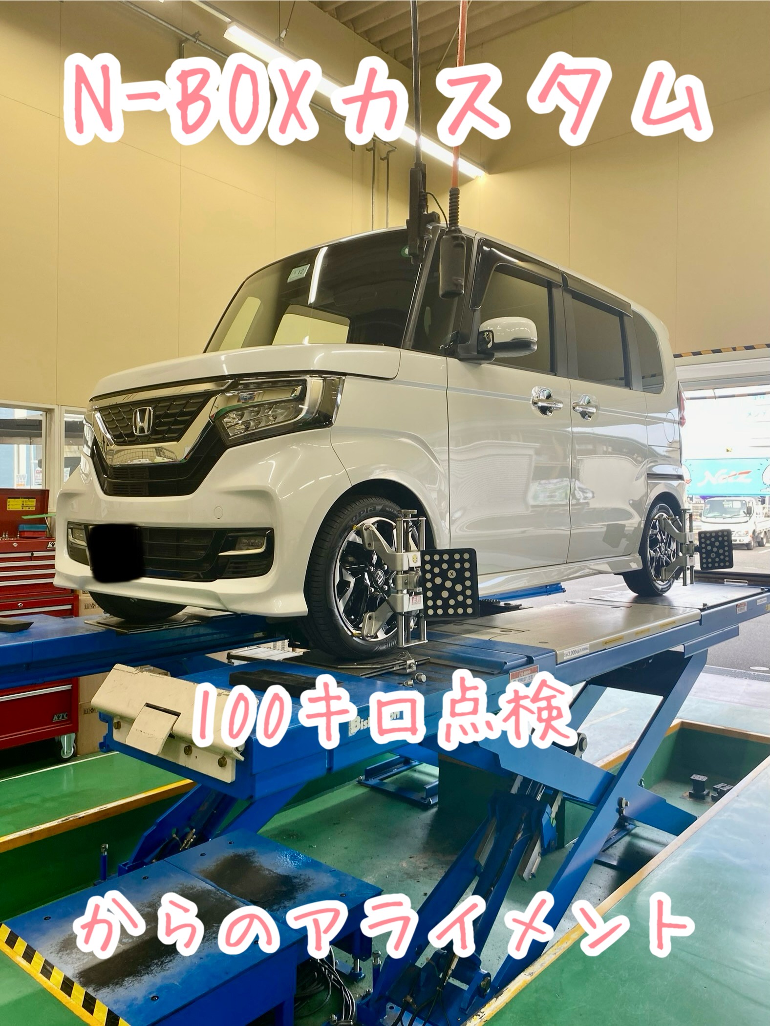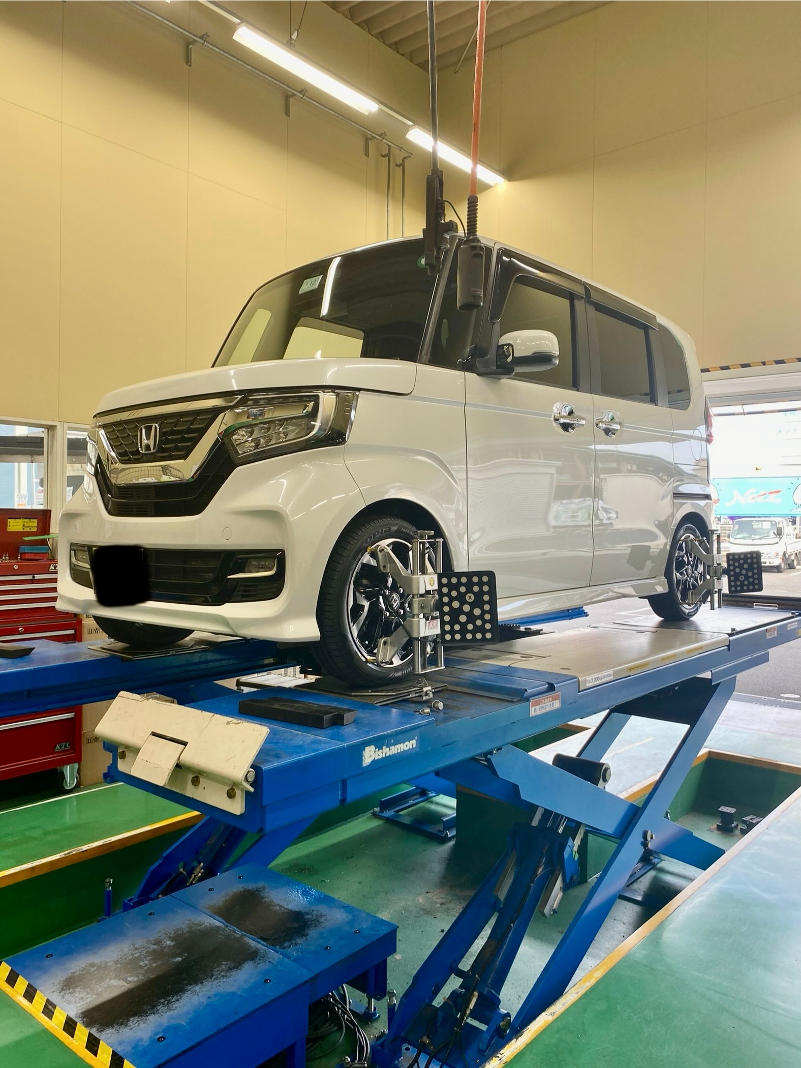 今回の作業事例は、ホンダ N-BOXカスタムの100キロ点検とアライメント調整作業になります!