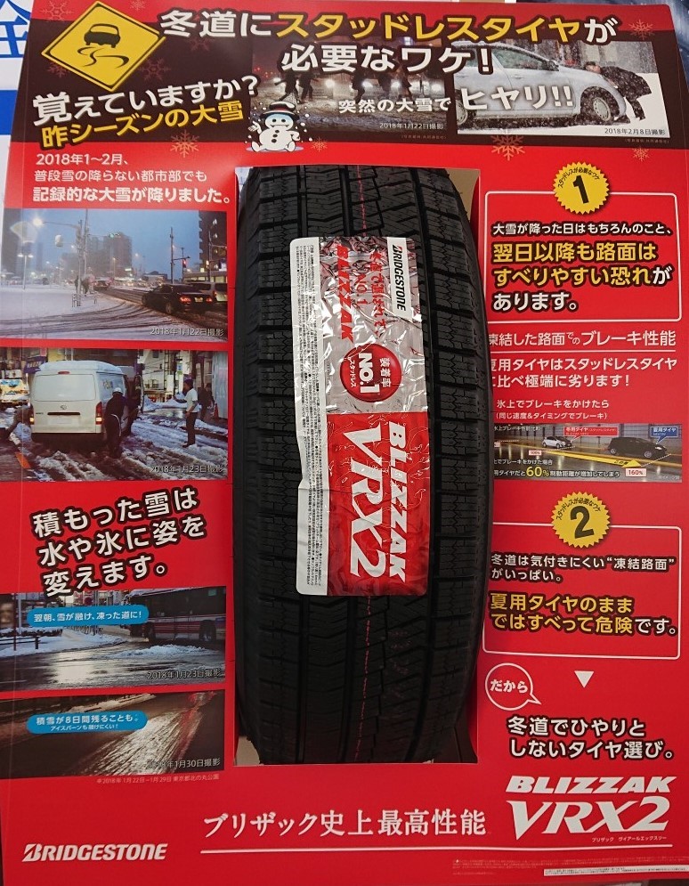 急な雪・凍結に!! ポスト 2019年1月25日 こんにちは *✲゚タイヤ館 笠岡店です*✲゚ 日中は暖かいのですが、朝晩はとても寒いですね・゚・。 今週末はもっと寒くなるみたいで・・・凍結が心配ですね。。。 そんな時でも安心、ブリヂストンのスタッドレスタイヤ!! 当店はまだ在庫ありますよ~ 即付け可能(在庫あれば・・・) 是非、ご相談だけでもご来店下さい。 お待ちしております╰(*´︶`*)╯