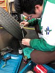 いつもタイヤ館笠岡店のブログをご覧いただきましてありがとうございます。 タイヤ館笠岡店藤井スタッフです! 桑田スタッフが一生懸命にパンクしているタイヤに修理をしています! 今回は外から治す方法「外面修理」をしている最中です。 これとは別にタイヤ館がお勧めしている修理方法の「内面修...