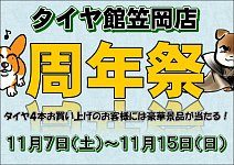 全国一億人の沖ブロファンの皆様こんにちは|ω・) タイヤ館笠岡店の太郎こと沖ですよw さてさて・・・ 実は11月7日土曜日から 周年祭を開催します!!! 今年は雪が降りそうなので スタッドレスがバンバン出てます!!! 周年祭でタイヤを購入すると!!! 子供には!!! 私が食べずに我慢したwお...