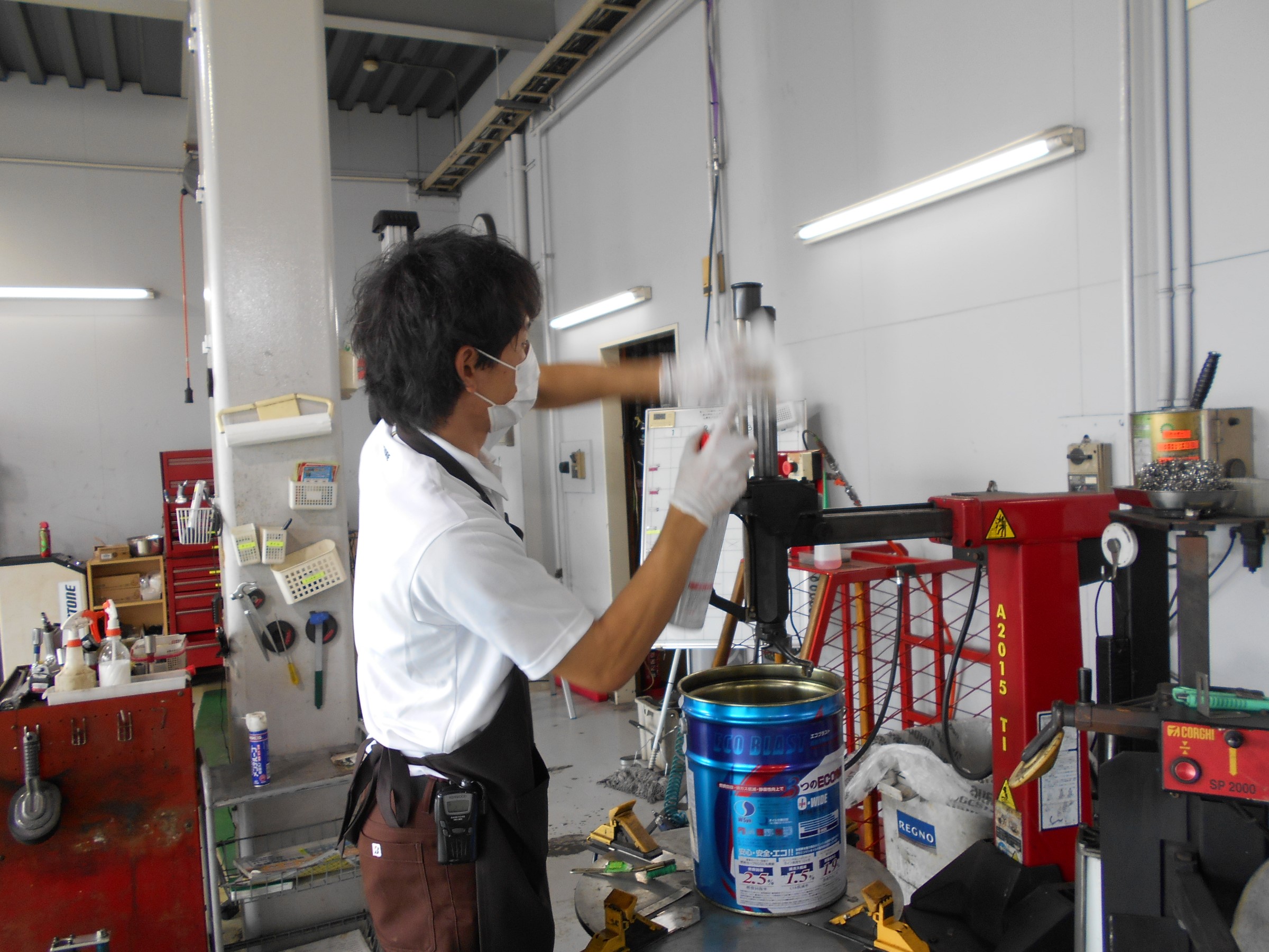 阿部君はタイヤチェンジャーのメンテナンス中(^^)/