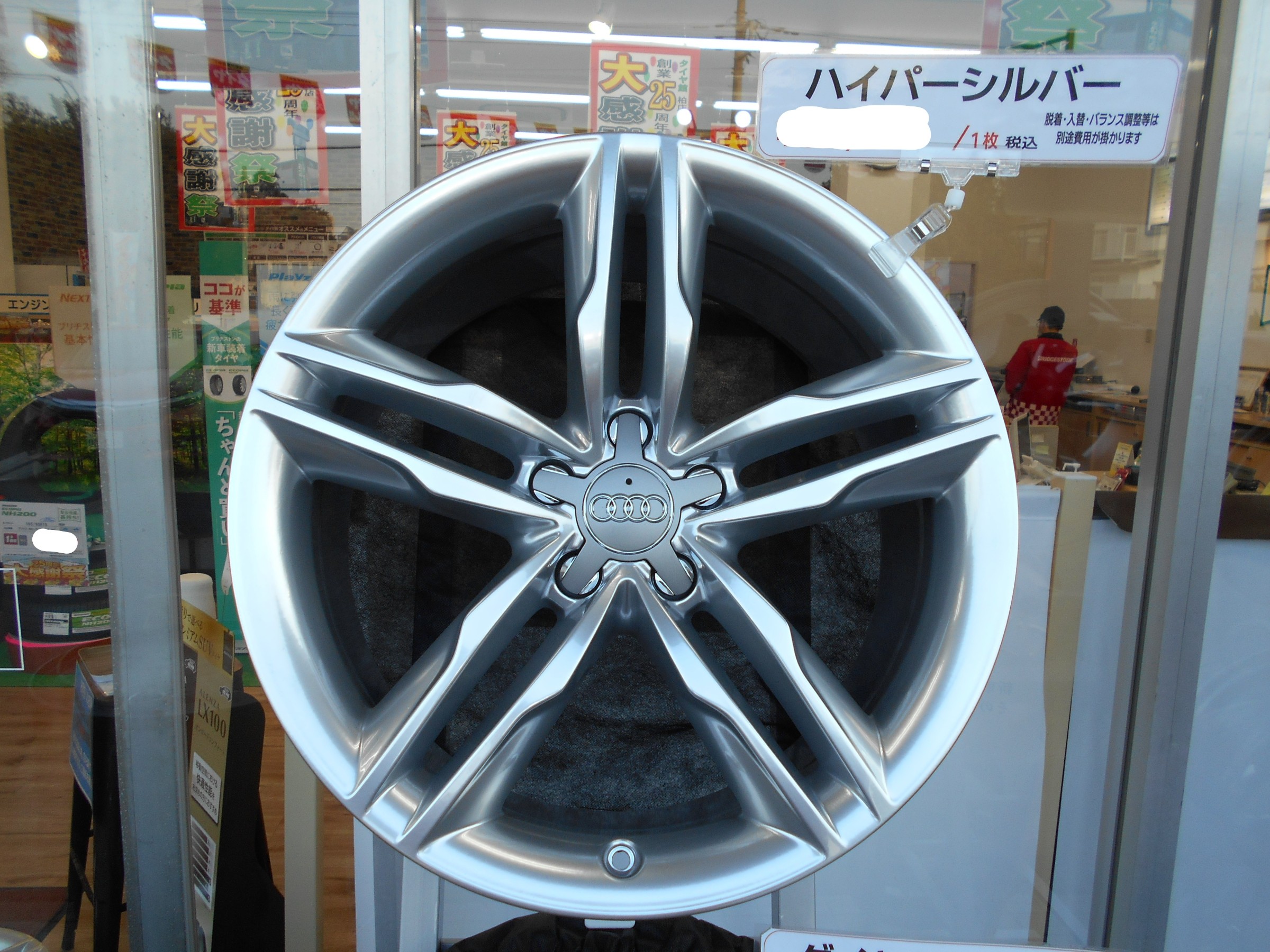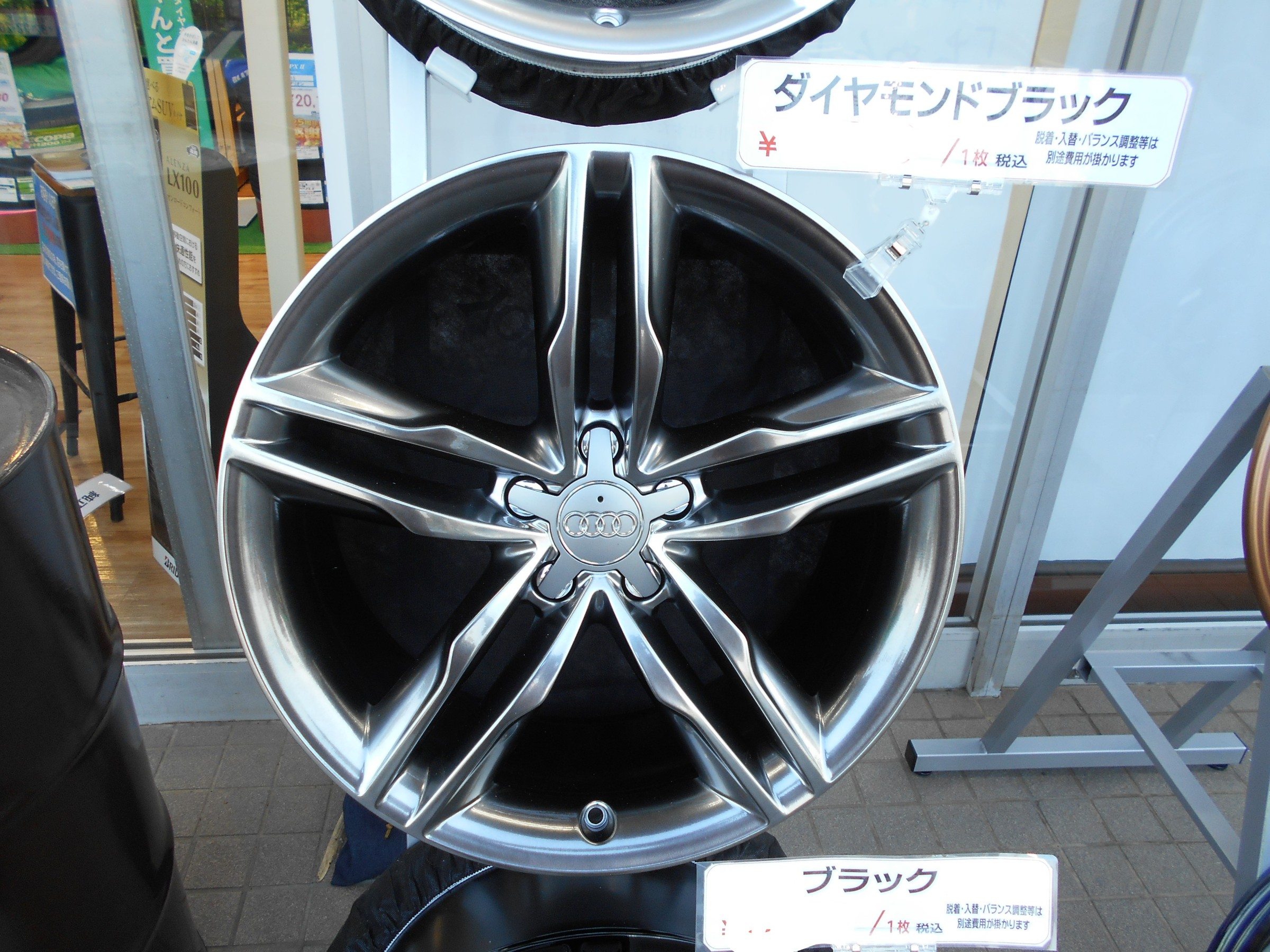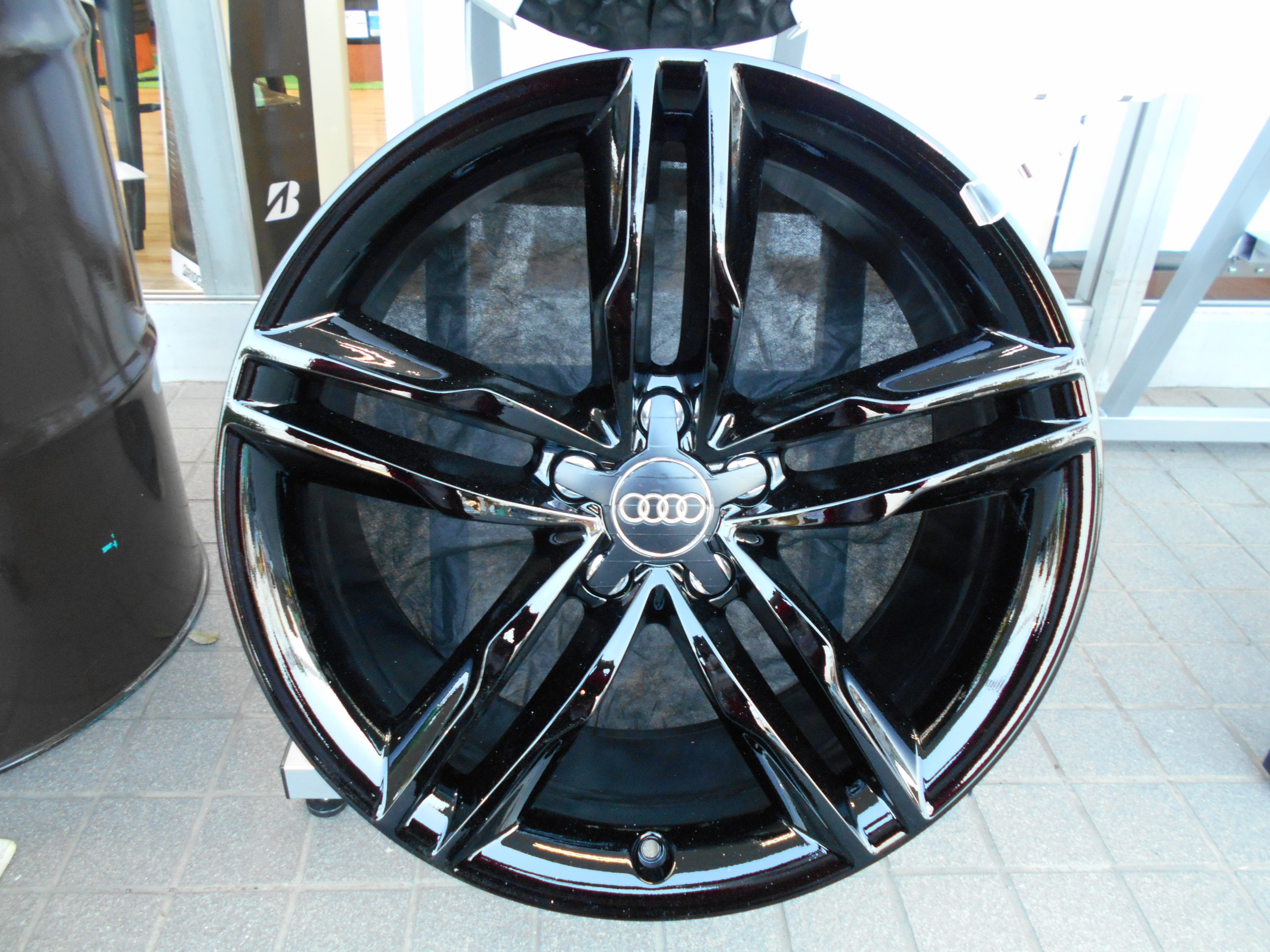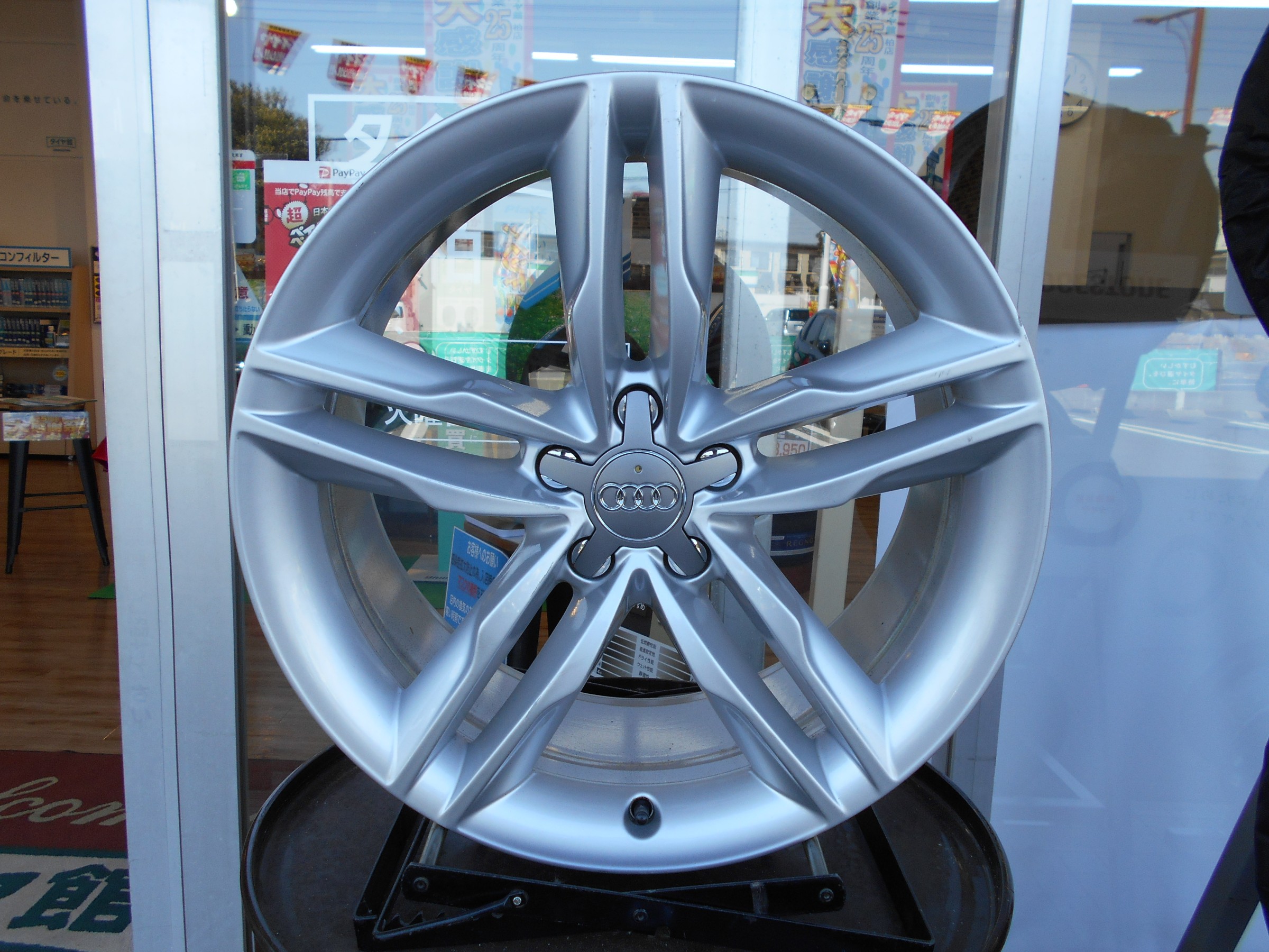 今回サンプルとしてアウディの純正ホイールを仕入れまして、3枚リペアして展示してあります。