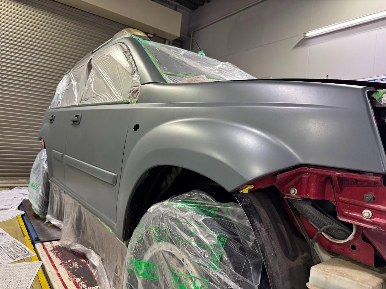 次の日、メインカラーがある程度乾燥したので、マスキングをし直してマットブラックに塗装!