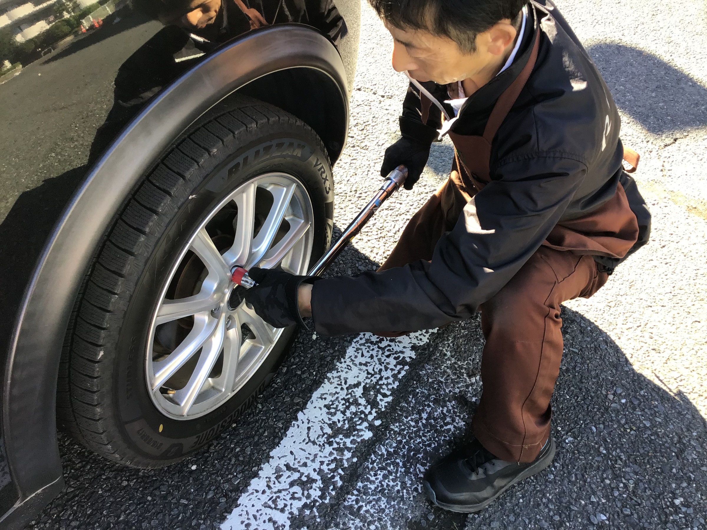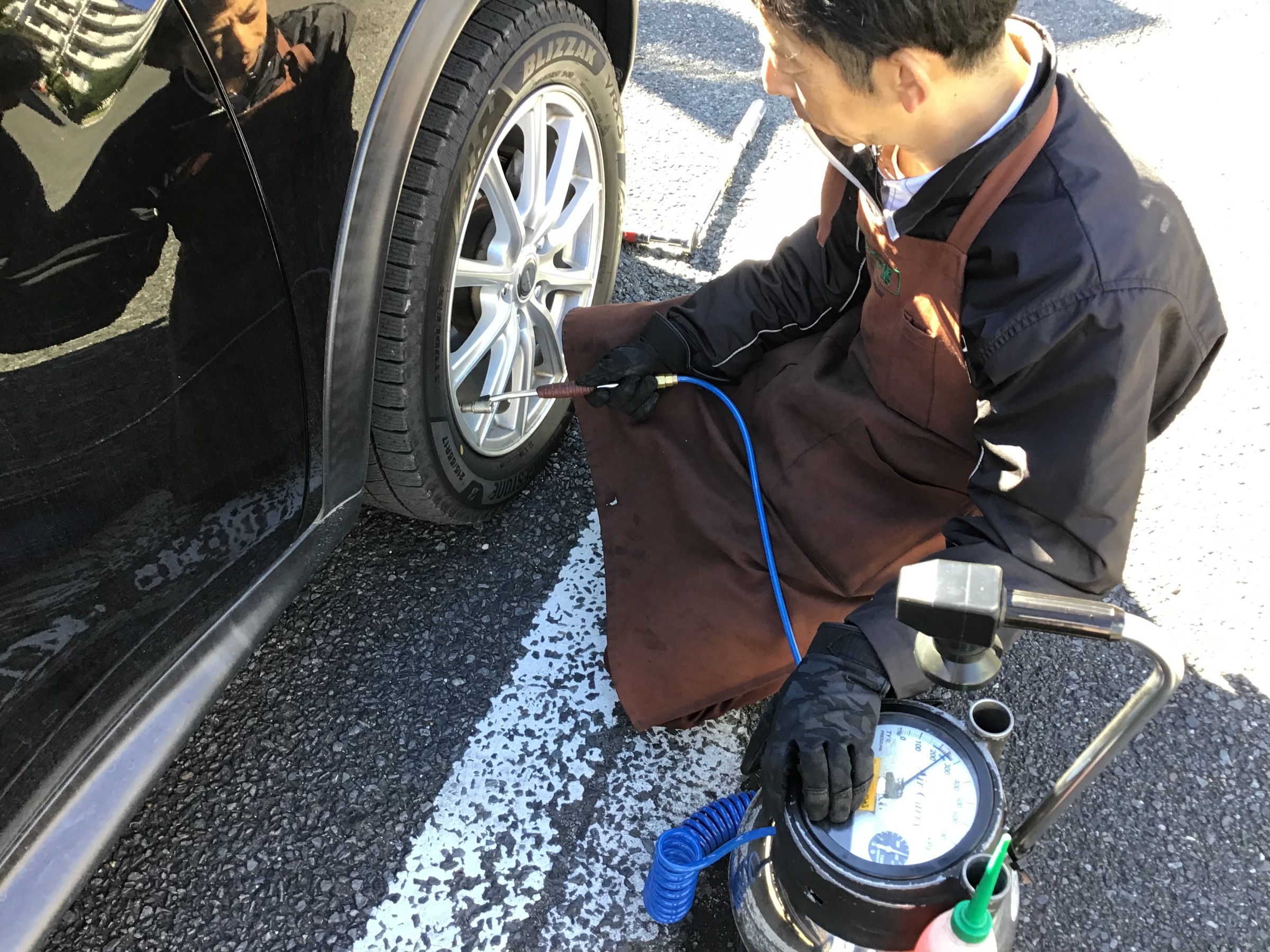 今日は、タイヤをご購入いただいた後の最初の点検、『100キロ点検』風景♪♪