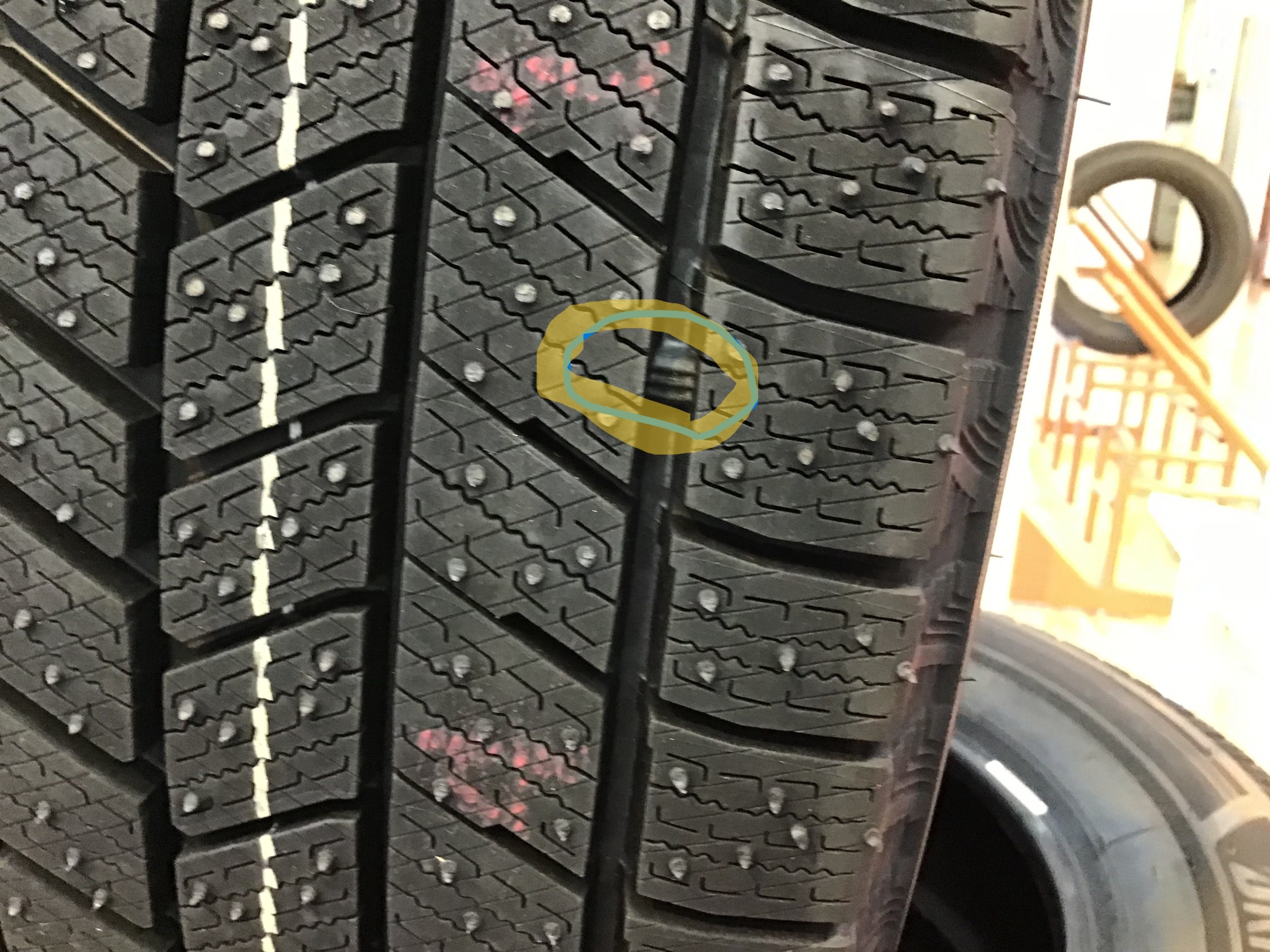 ごぞんじのかたもいらっしゃると思いますが、黄色の印のところをプラットフォームと呼ばれるところが出てくるとスタッドレスタイヤの使用限度となります。