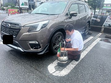 最近天気が急激な変わりようで、、、気圧やばいですね(-_-;) 今日は、タイヤ交換後の最初の点検風景♪♪ ナットに緩みがないかチェック♪♪ エアーが指定圧よりも変動していないかチェック♪♪ 夏休みのお出かけに向けて、 早めにタイヤ点検・エアーチェックをしておきましょう♪♪ エンジンオイル点検・バ...