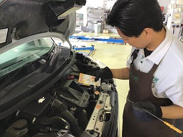 昨日と変わって、急に秋っぽくなりましたね!! 今日は、「安全点検」風景♪♪ エンジンオイルの量と汚れ確認中!! バッテリーの電圧と状態確認♪♪ 最近、パンクやバッテリー上がりでのご来店が増えております!! こまめな点検は、大切ですね(^^♪ エンジンオイル点検、バッテリー点検、ワイパー点検、エア...