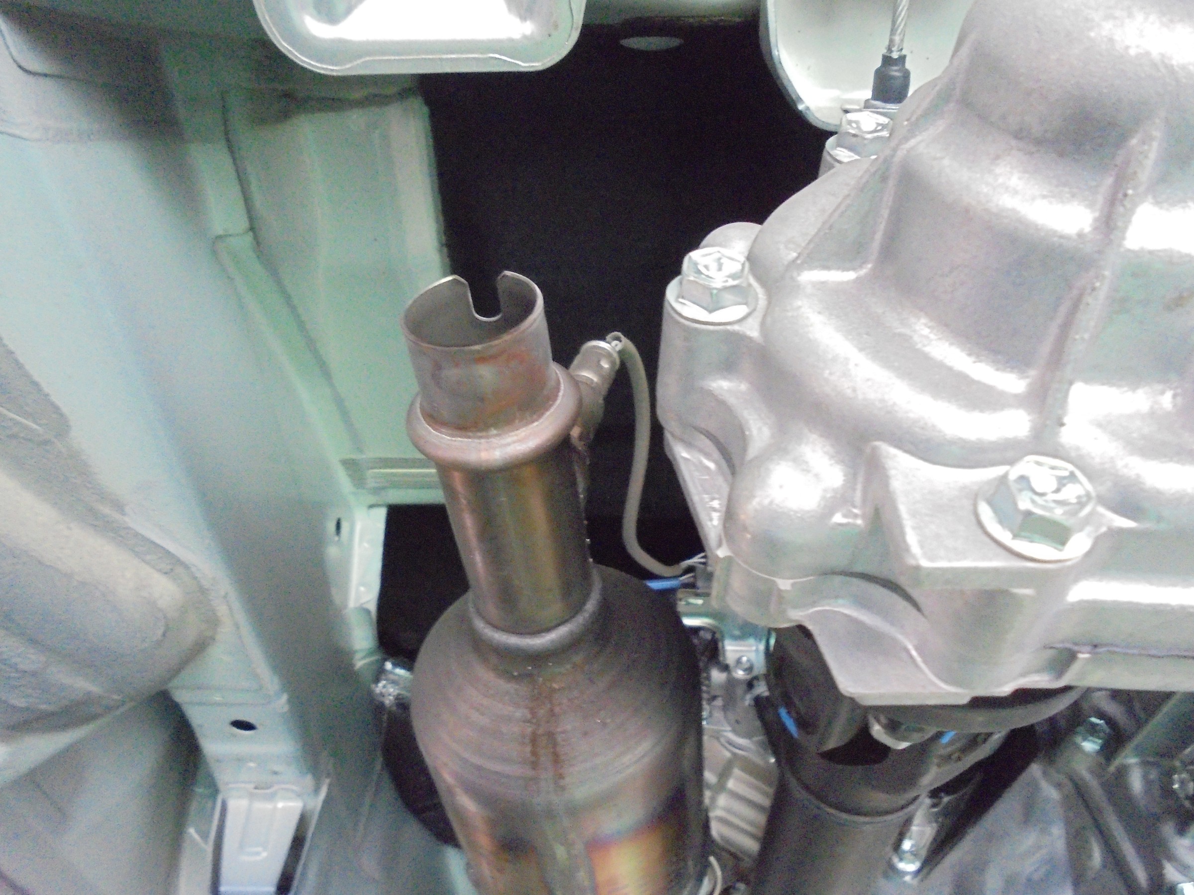 純正触媒後からの交換になりますので、純正リヤマフラーを外します。