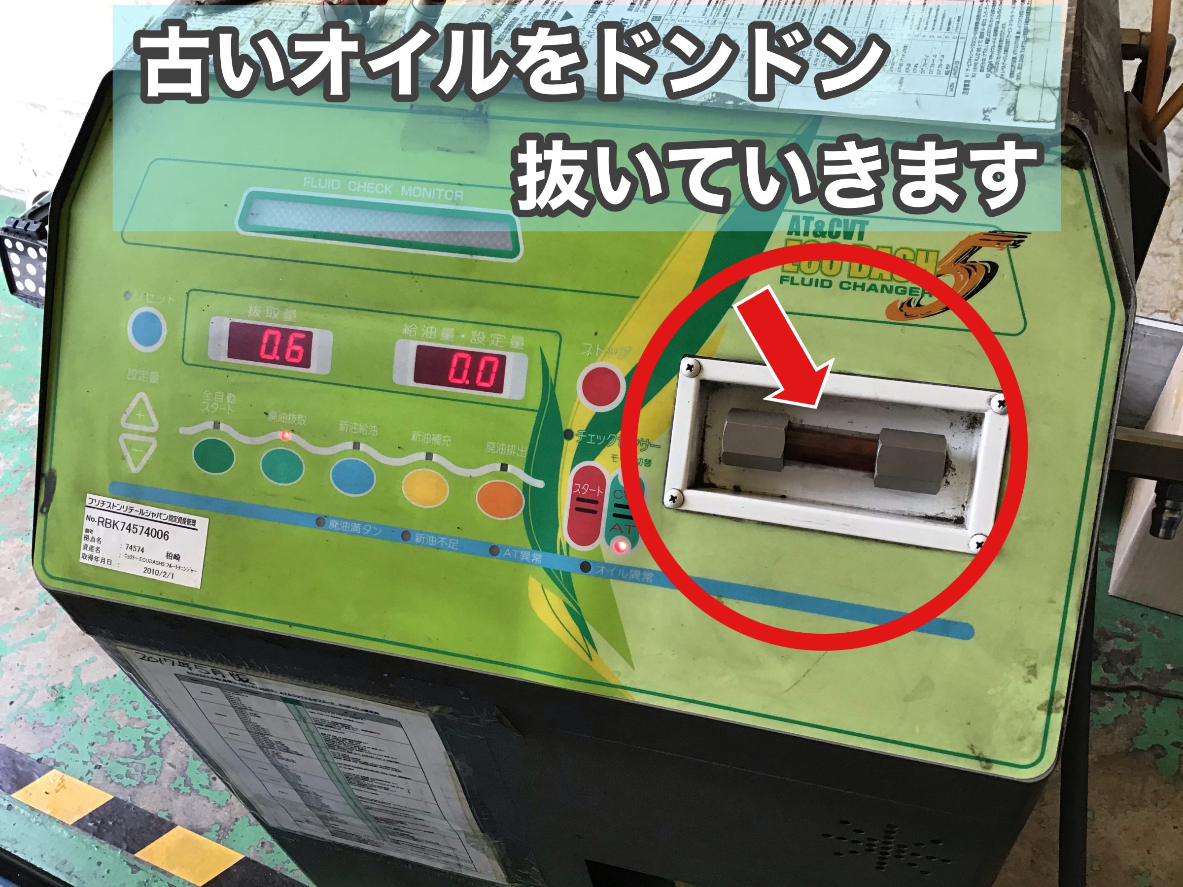 オイルチェンジャーを使用した汚れた古いオイルを抜いていきます。