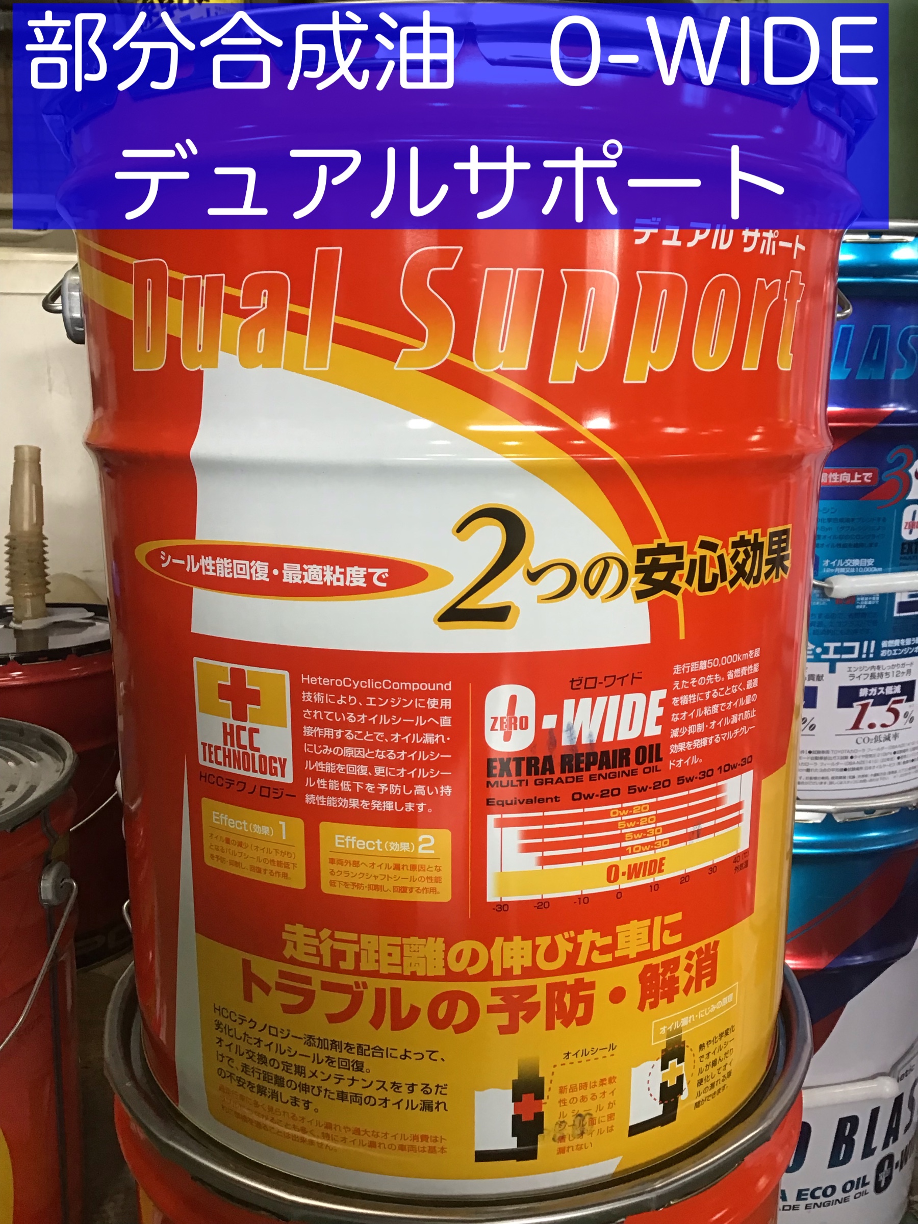 部分合成油のデュアルサポート0W-WIDEです。