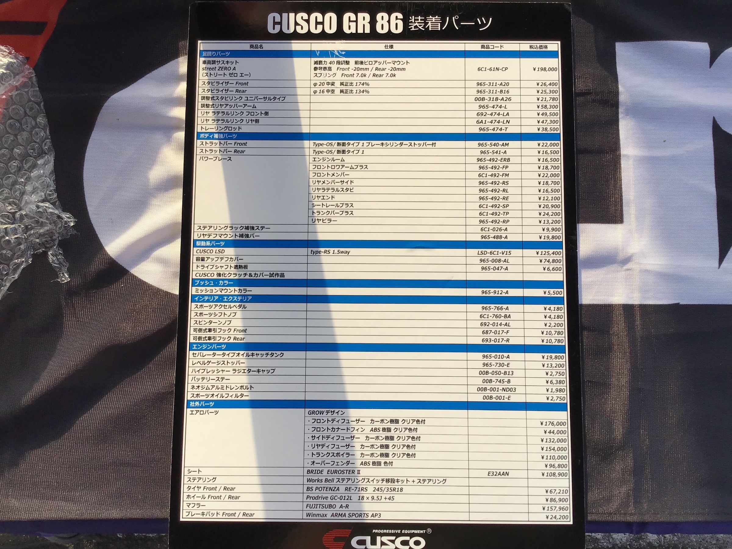 していただけあり、クスコ製品が