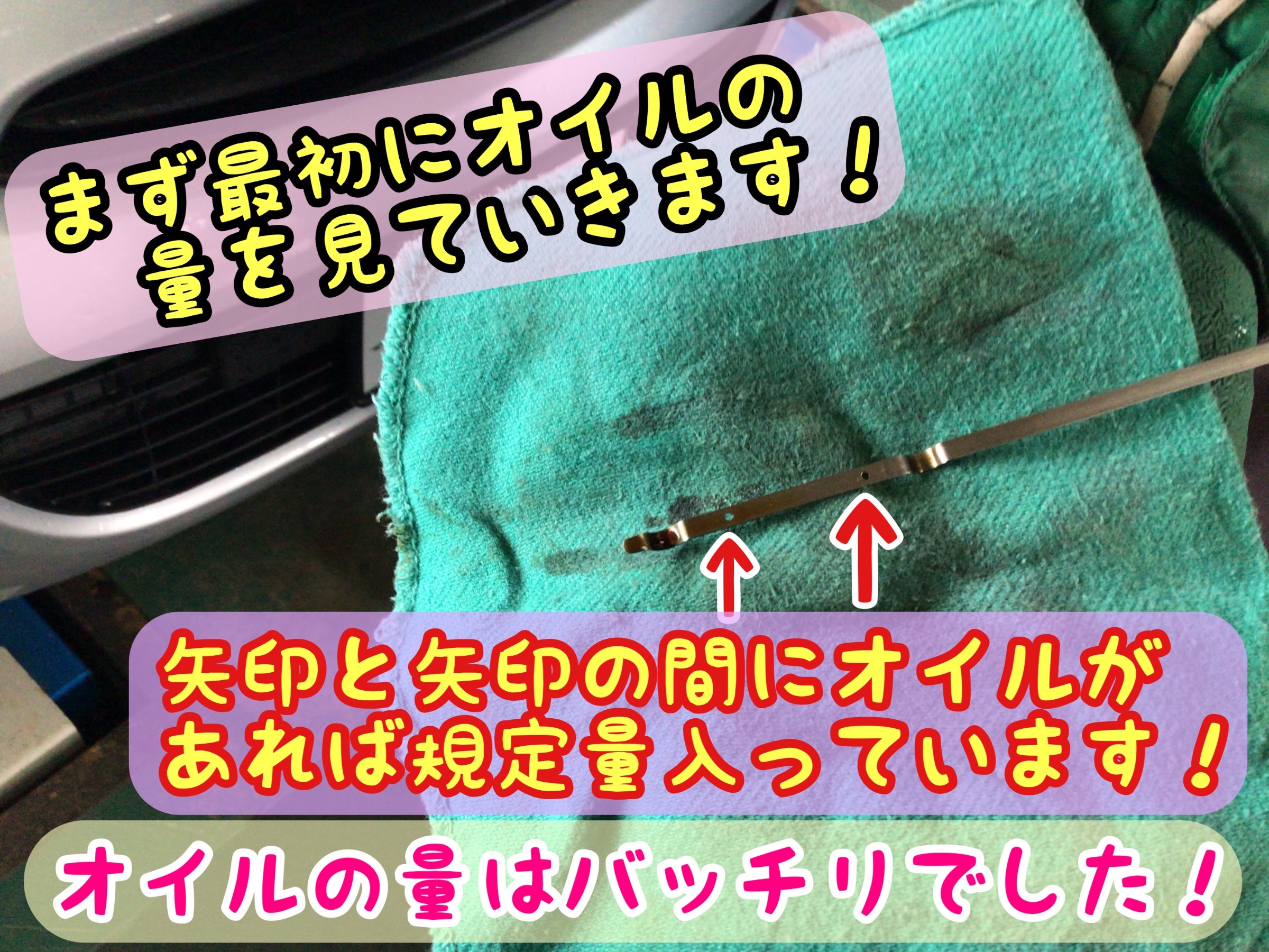 今のオイルの量を確認します!