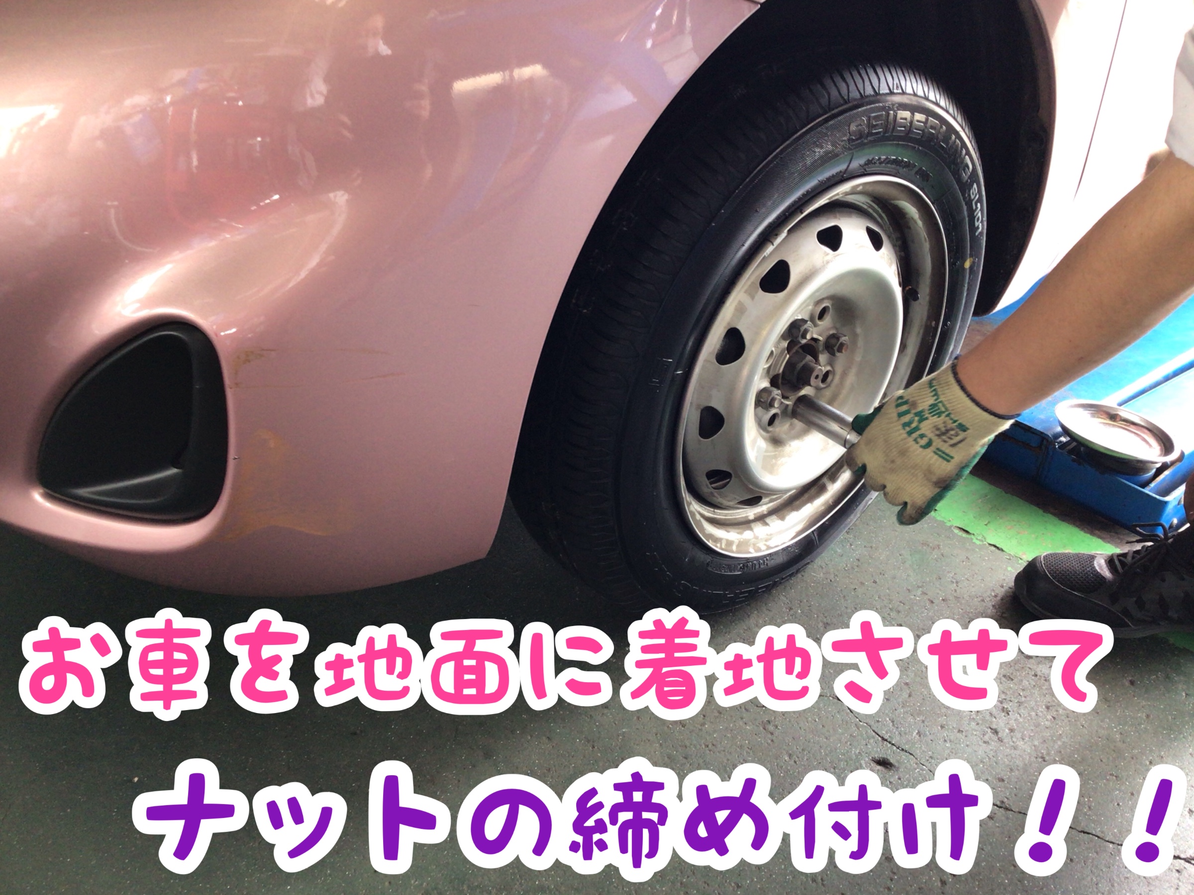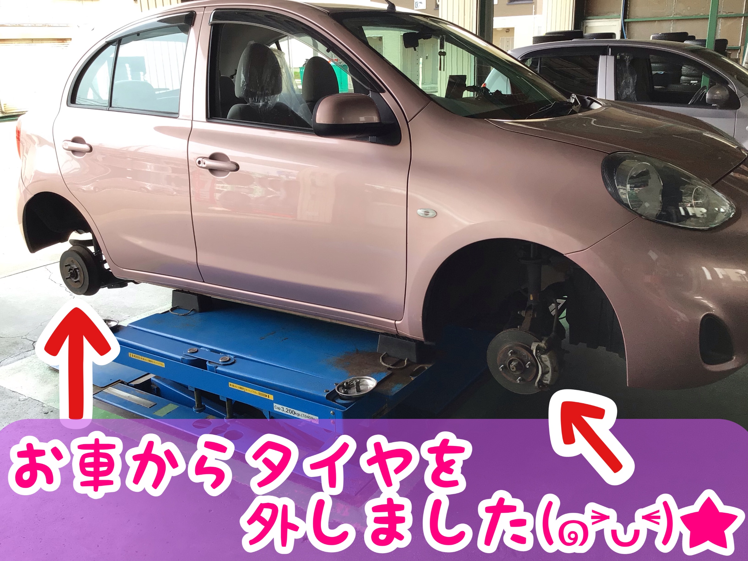 お車を上にあげてタイヤを