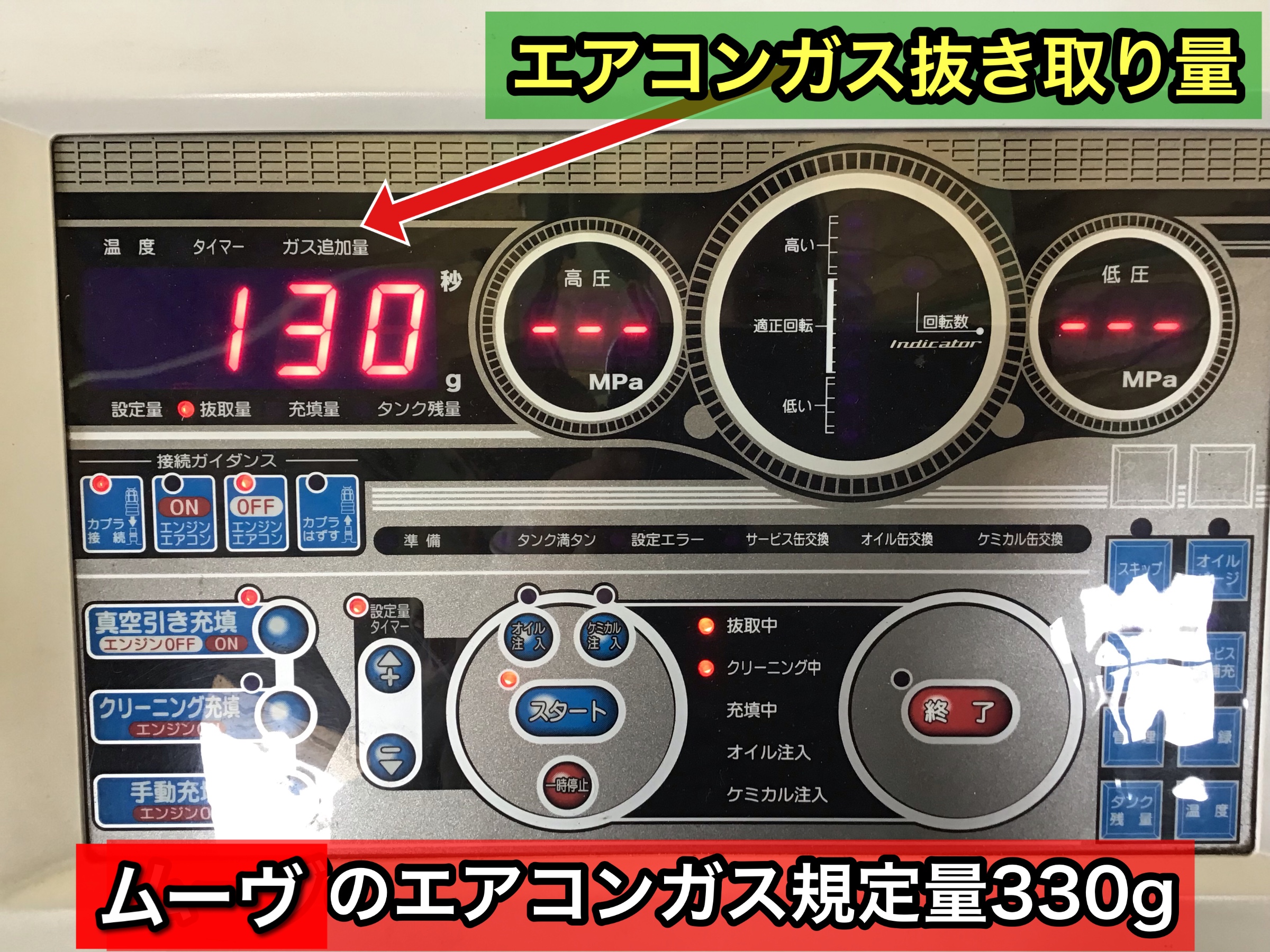 エアコンガス全量入替・真空引き充填を実施することで、