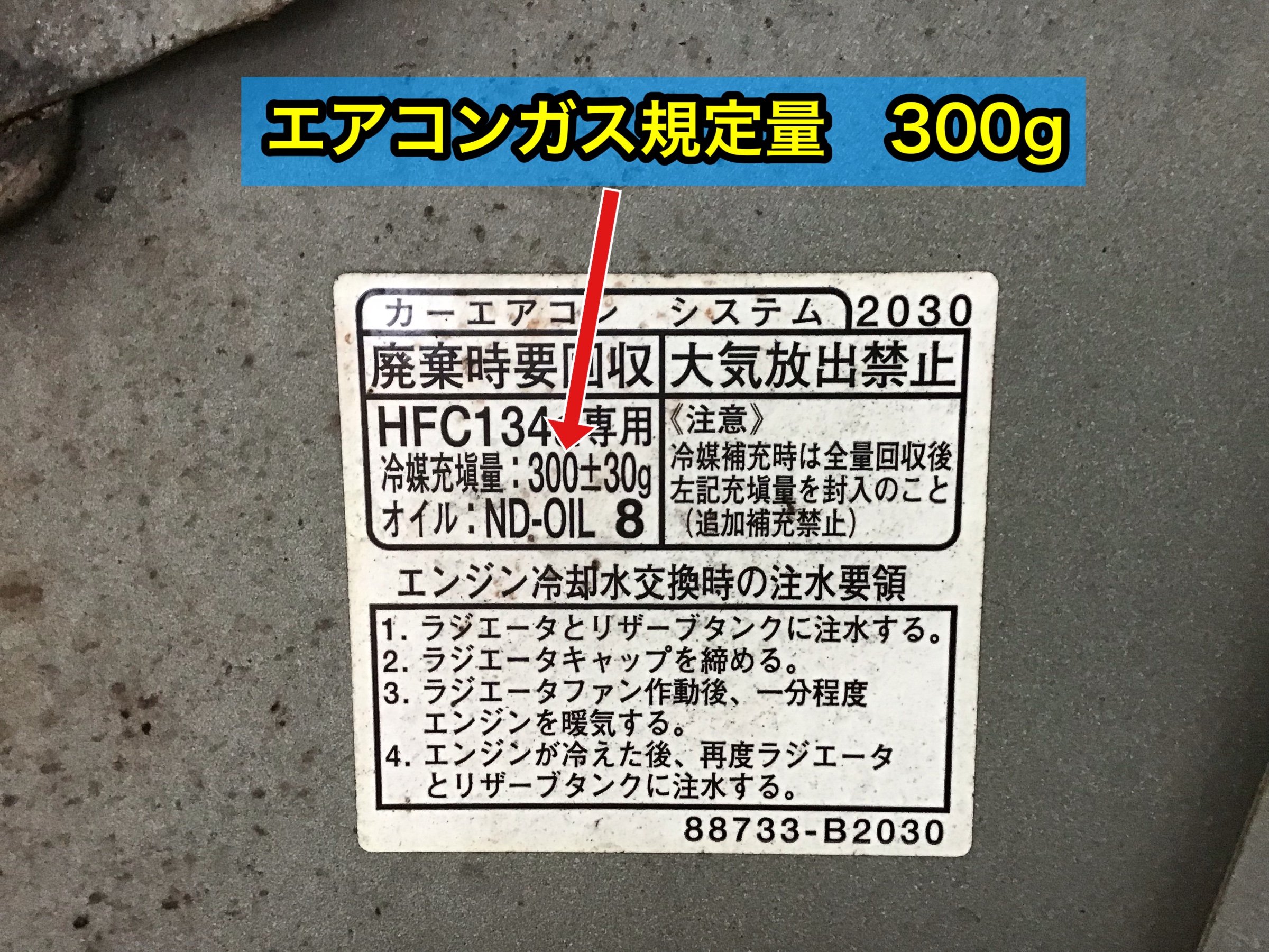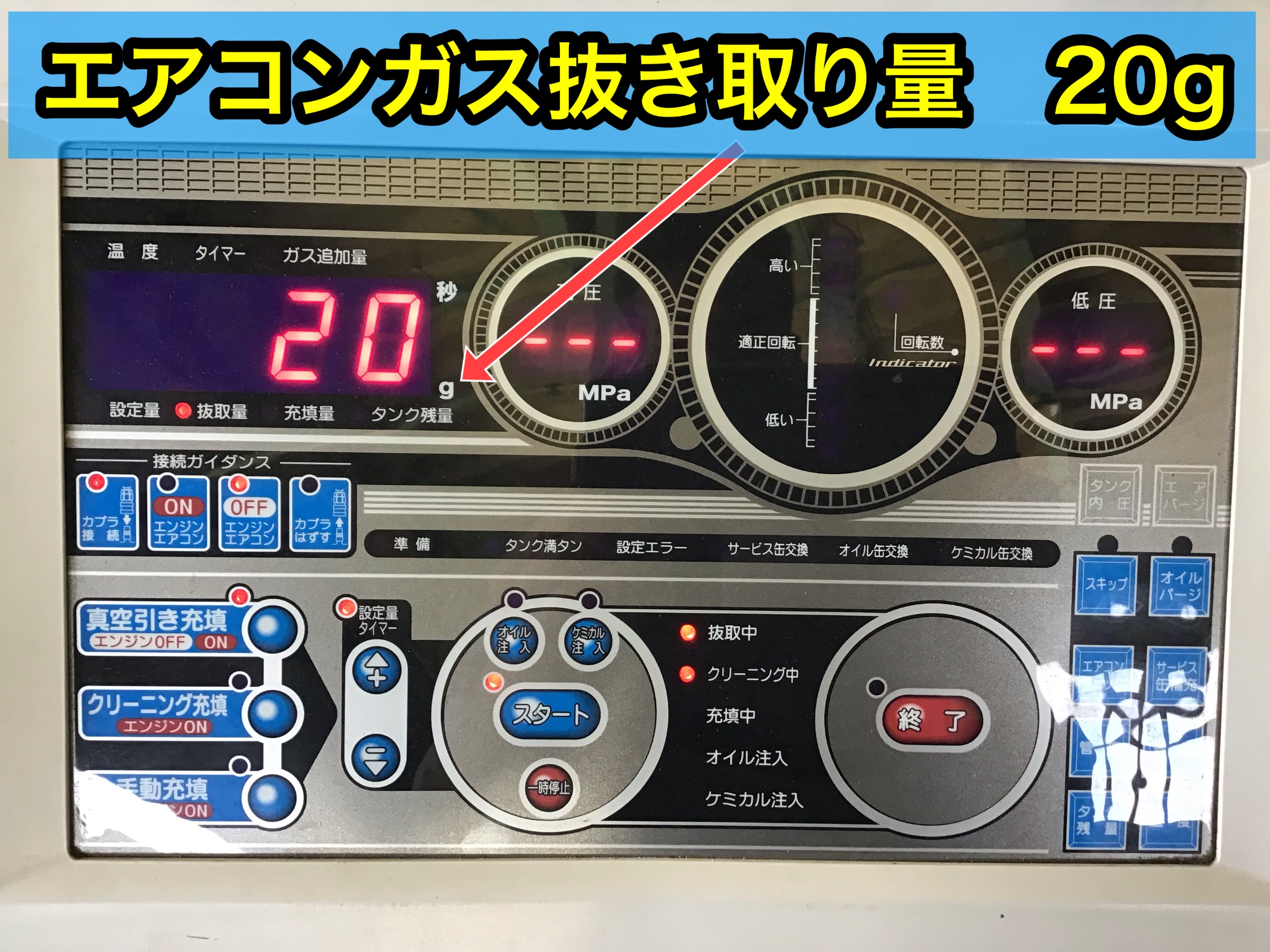 エアコンガスを車両から抜き取った量は