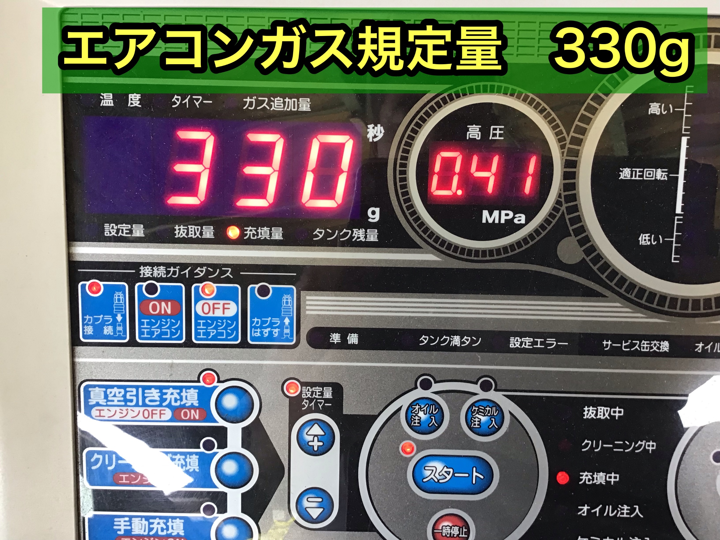 エアコンガス充填量 330g補充しました!