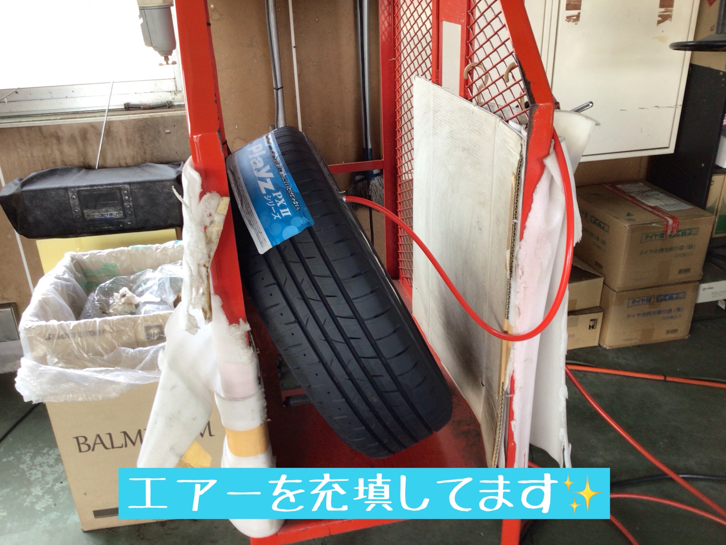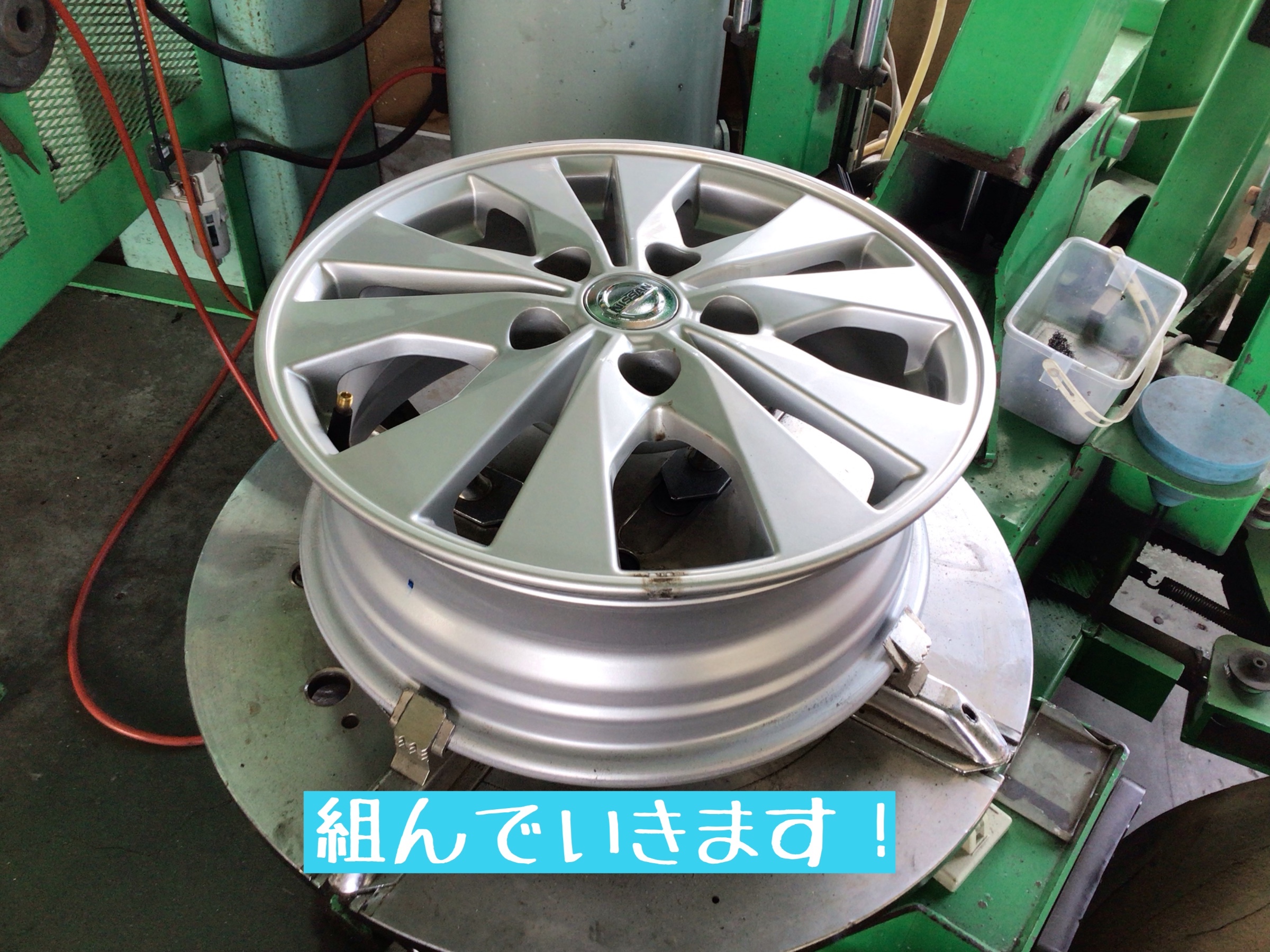 タイヤが組めたらエアーを充填して