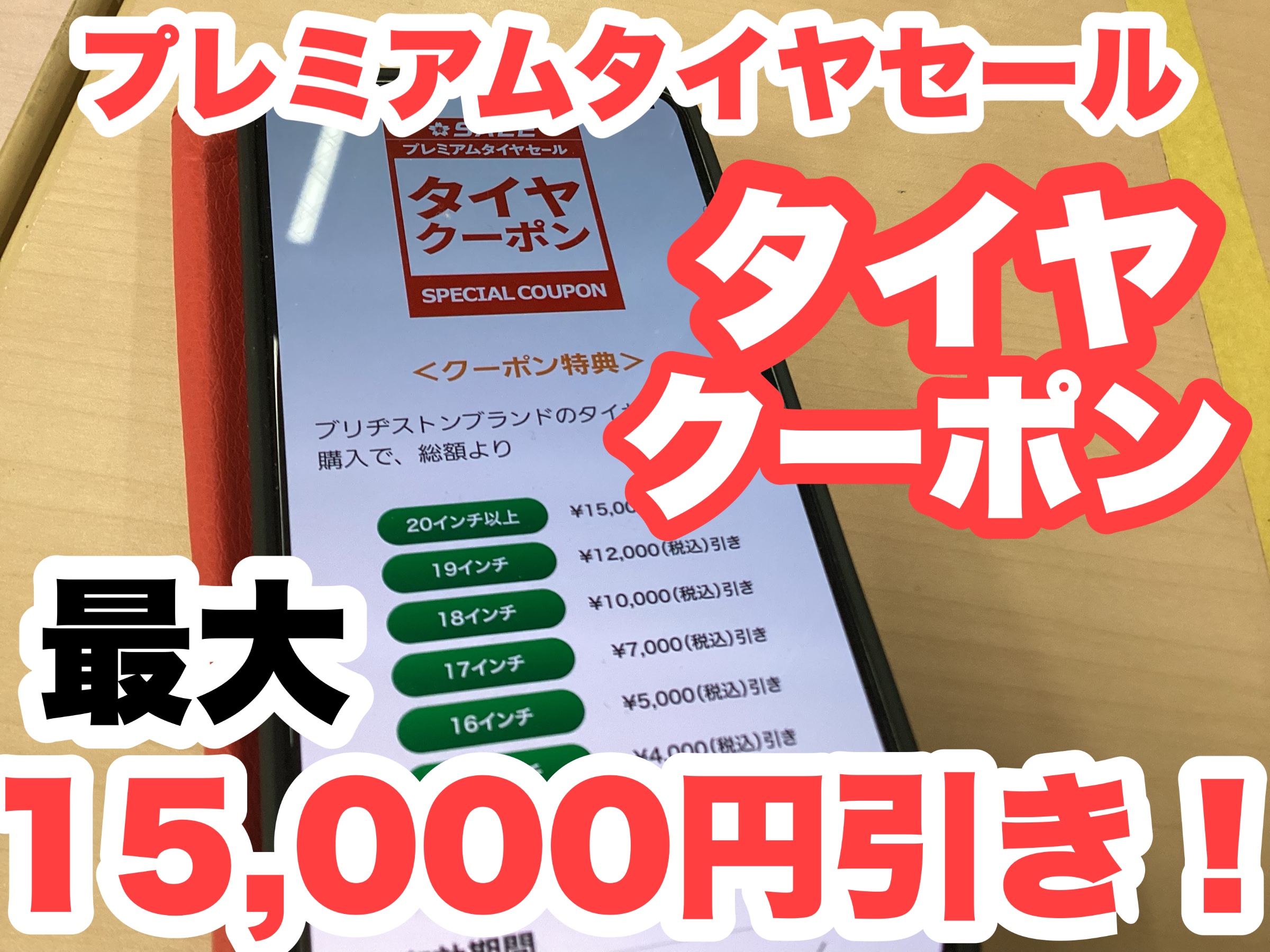 最大15,000円引きのタイヤクーポンはアプリからですよ(^^)