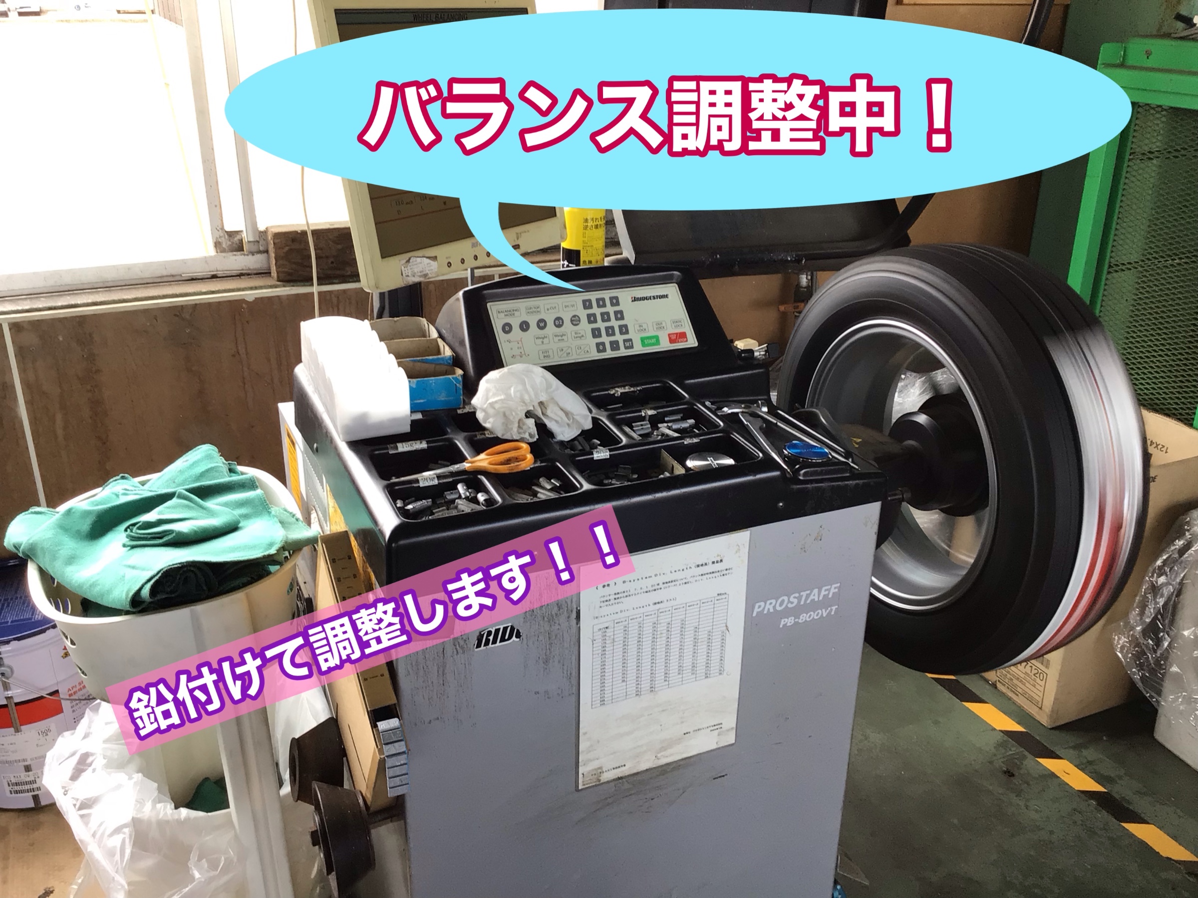 タイヤのバランスは鉛付けて調整していきます!