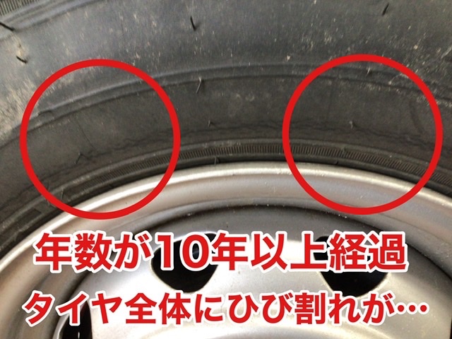タイヤ全体にひび割れがあり
