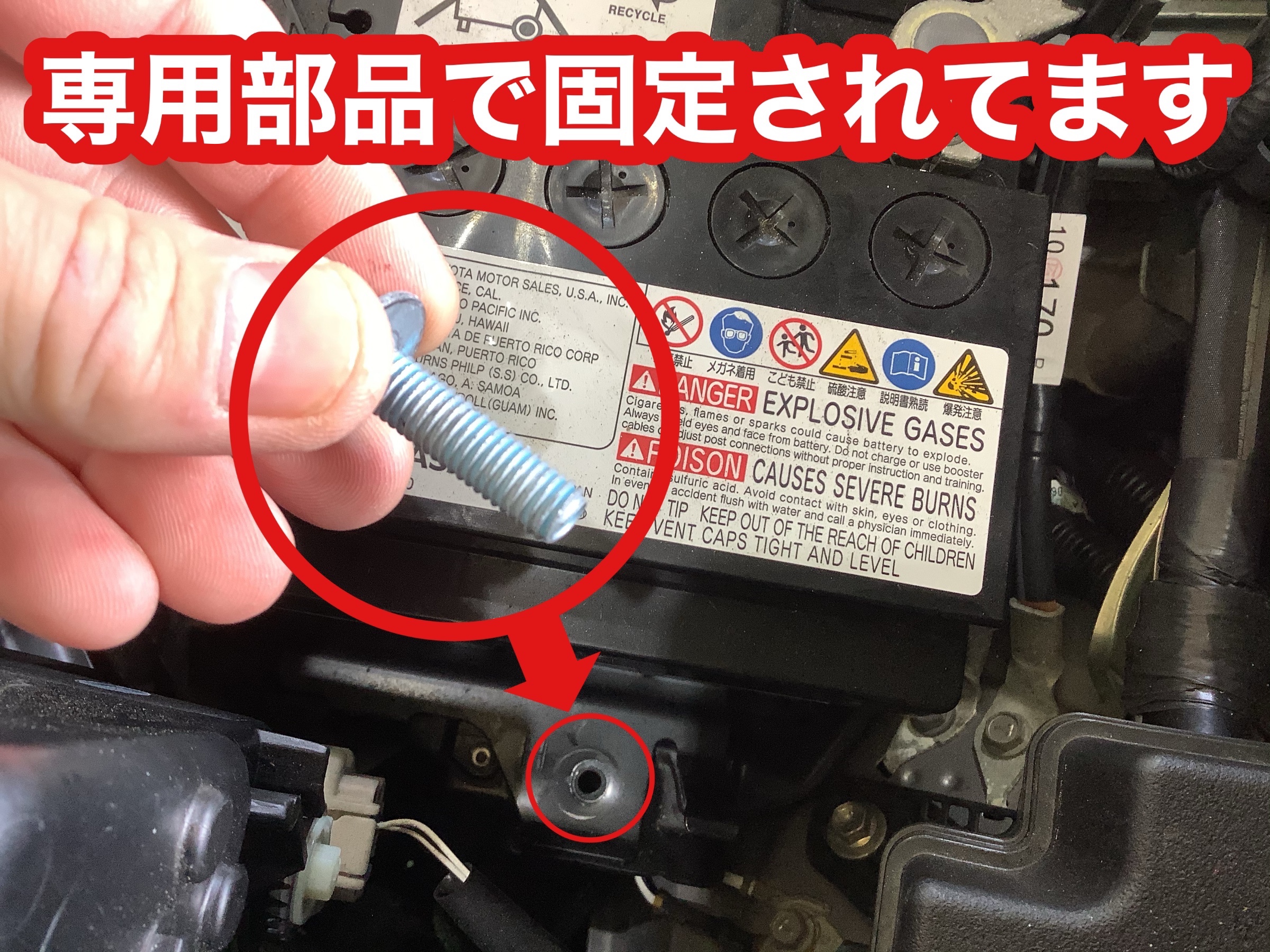 従来はバッテリー上部に金具で固定されていますが、