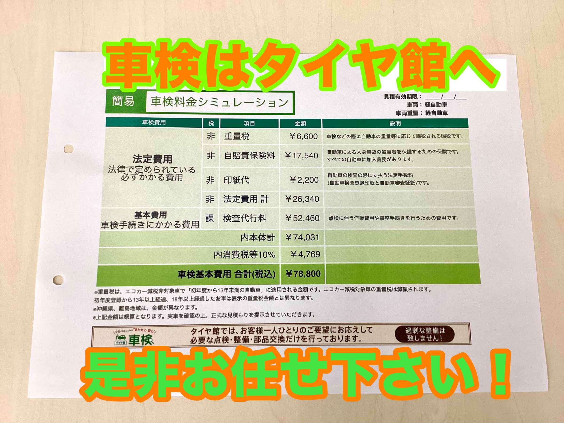 車検日が近い方には、簡易見積りをお渡ししてます!