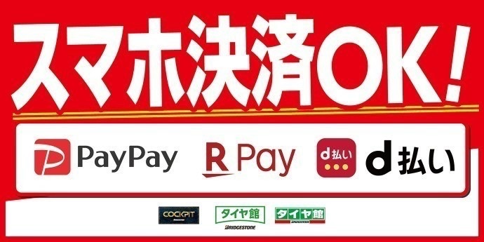 d払い、PAYPAY(ペイペイ)、楽天PAYもOKです。