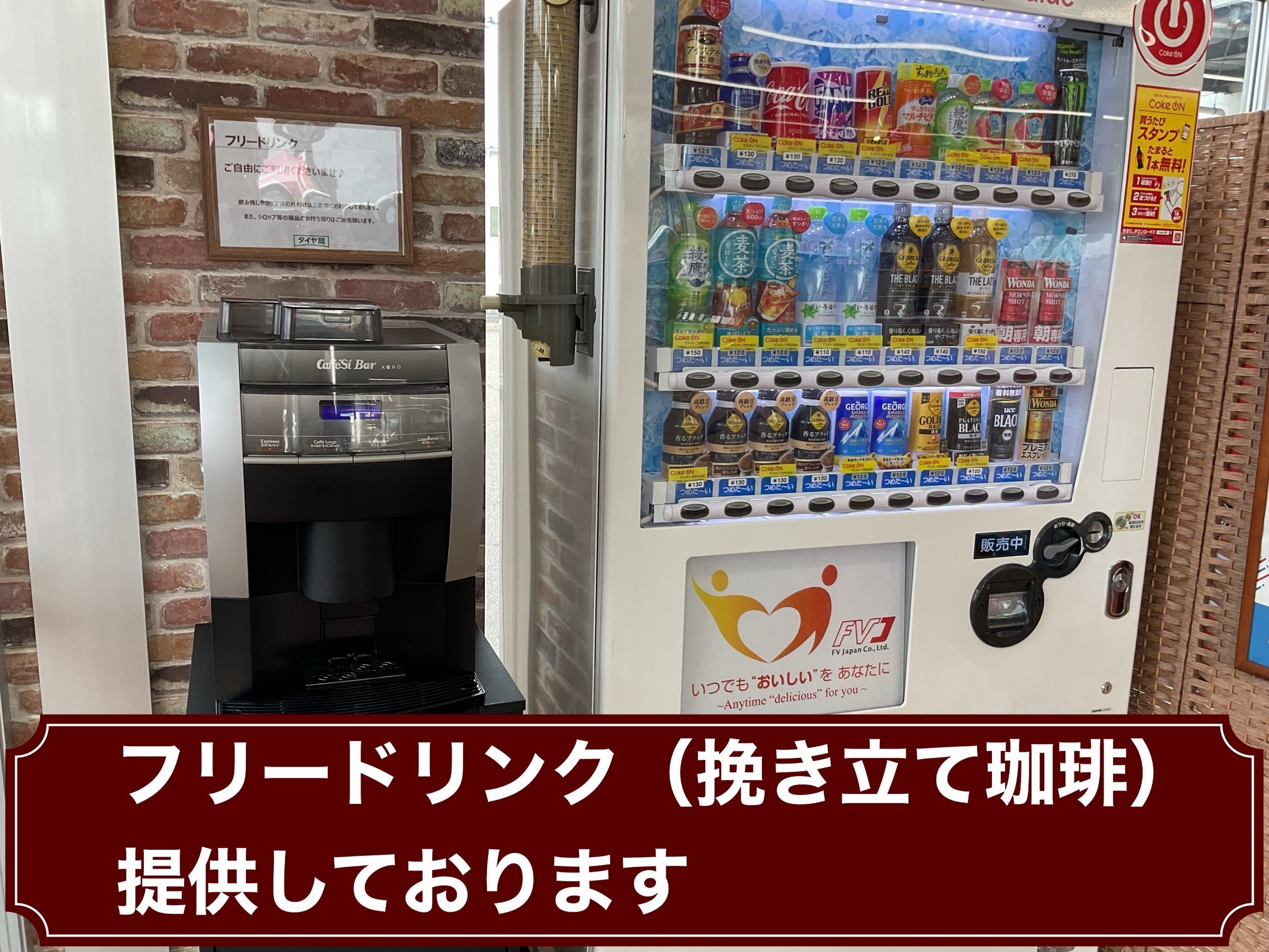 店内に自動販売機も設置しています