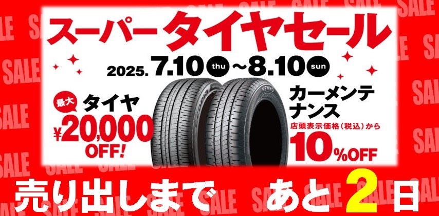 スーパータイヤタイヤセール開催まであと2日(*^^)v
