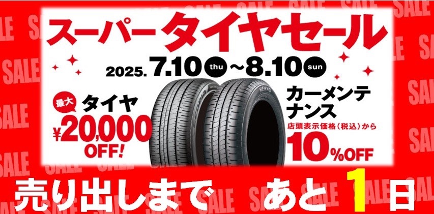 スーパータイヤタイヤセール開催まであと1日(*^^)v