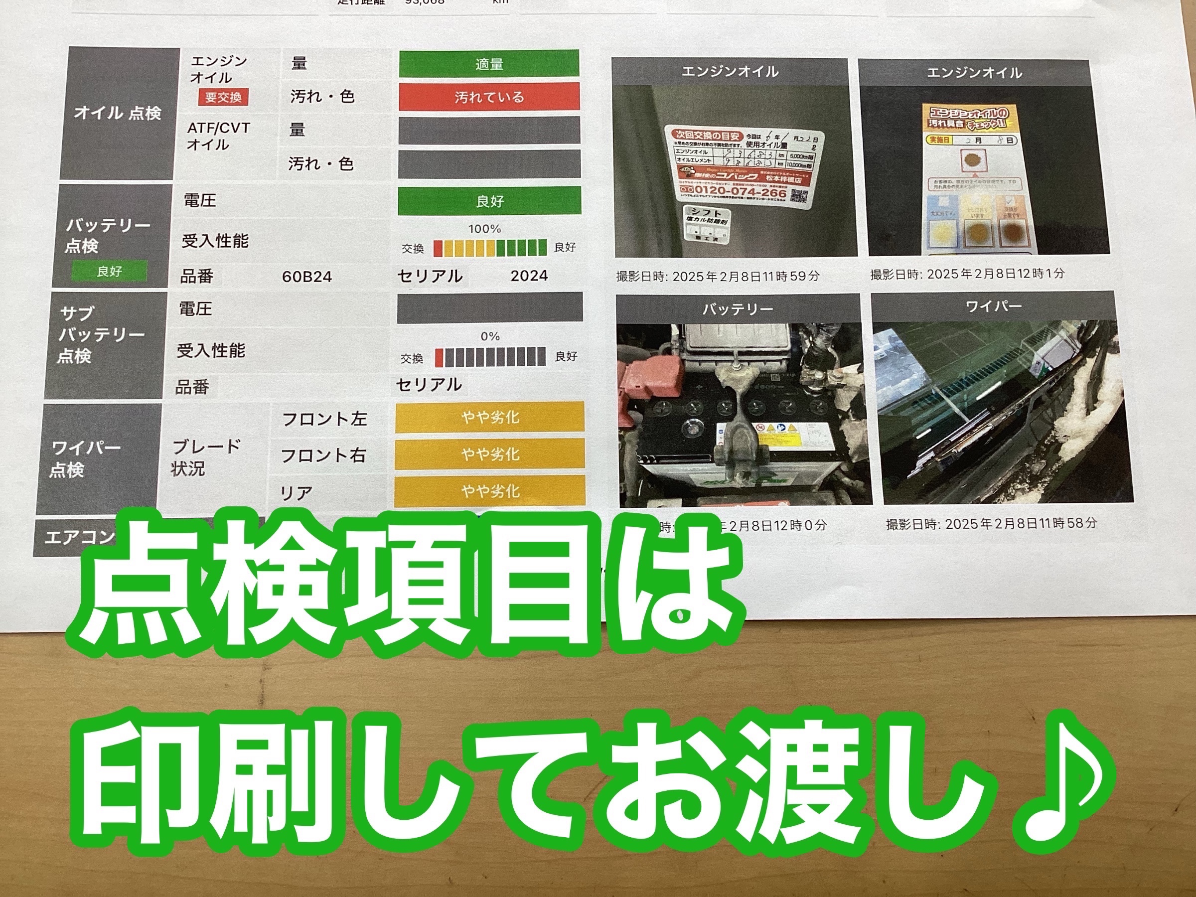 点検後は撮影した写真付きの点検結果を印刷して