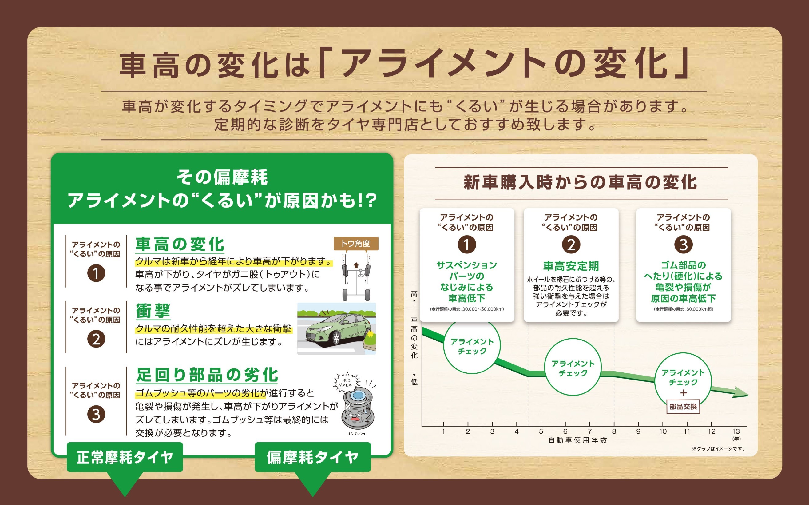 タイヤの偏った減り方は要注意【アライメントしてますか?】