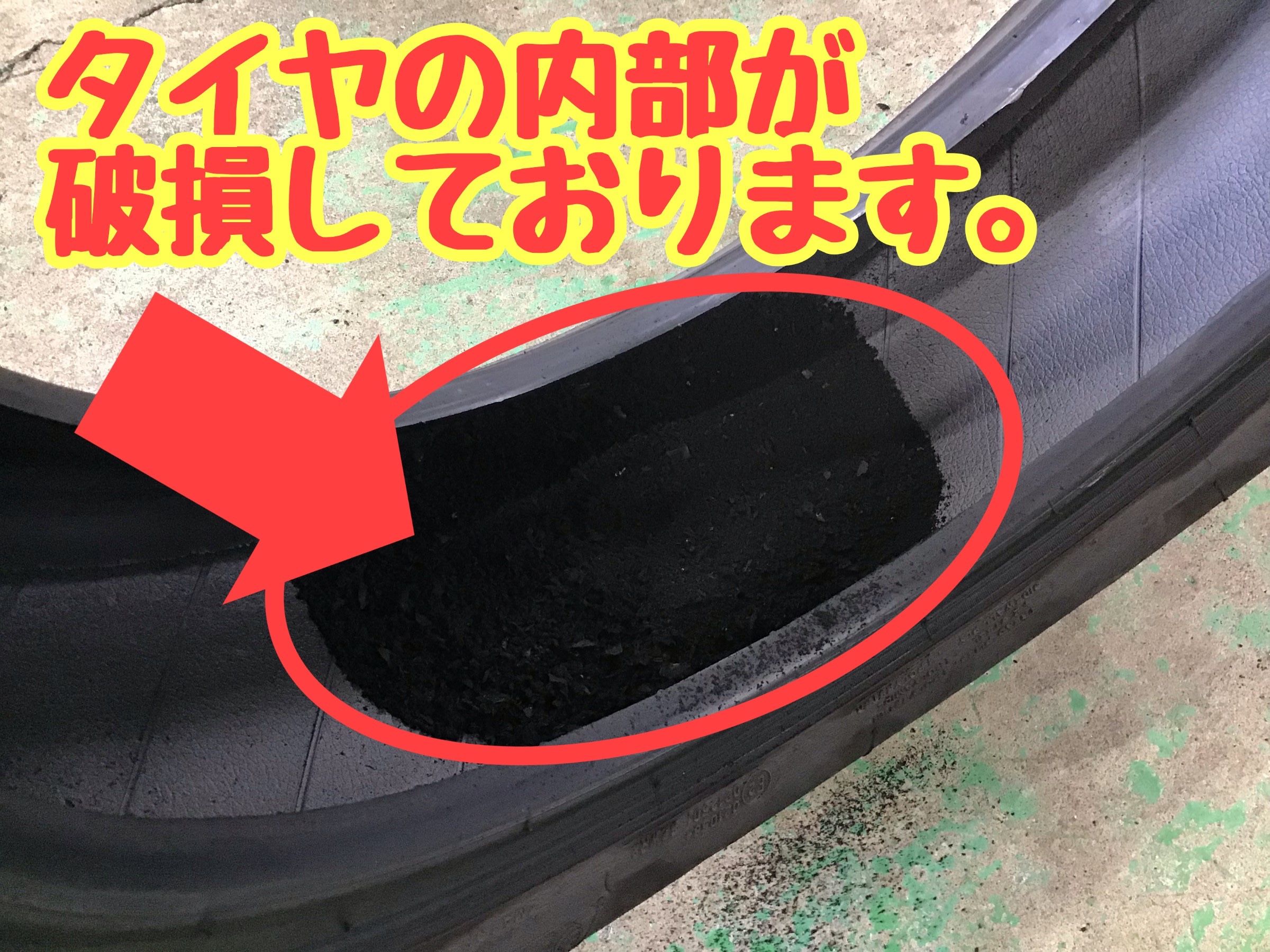 タイヤのゴムが剥がれてしまい