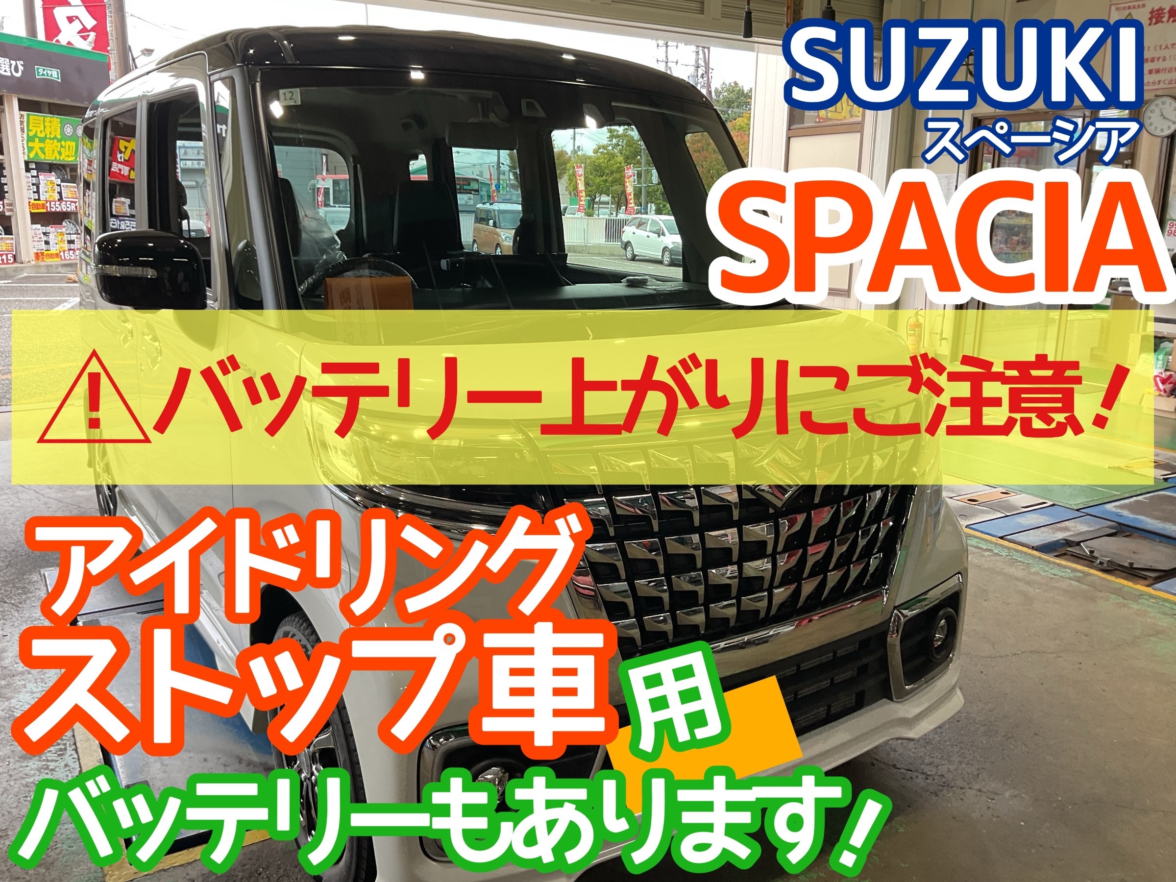 【SUZUKI スペーシア】アイドリングストップ用バッテリー交換です!突然のバッテリー上がりにご注意を!!