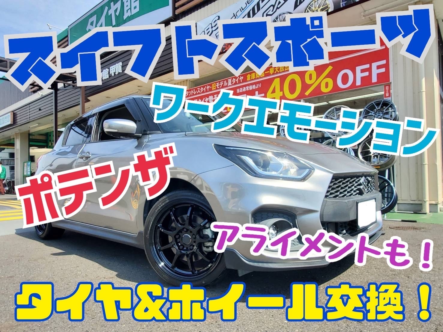 他店事例【スイフトスポーツ】タイヤ&アルミ交換