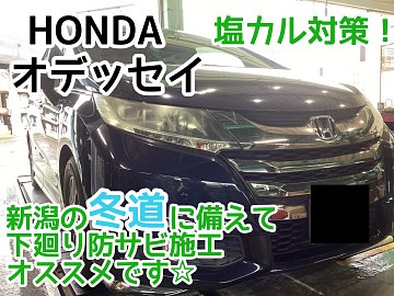 柏崎といえば・・・海の街 そんな柏崎のお車のメンテナンスに欠かせないのが 防錆コーティング! そこで今回は、新潟の冬対策の1つ 下廻りの全体防サビ施工のご紹介です☆ 冬場の新潟はおクルマが錆びる原因となる 融雪剤をバイパスや一般道、高速道路など 様々な箇所に散布しております。 防サビ対...