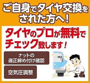 お出かけ前にタイヤ館で愛車無料安全点検を! タイヤ点検、お車の点検は定期的にしてますか? ・ハンドルが取られる感覚 ・エンジンからの異音 ・燃費が悪くなった気がする等 そうした症状をそのままにすると、お車の不具合につながるかもしれません。 タイヤ館では無料愛車点検を実施しております...