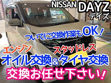 本日の作業事例は日産 デイズです! この時期オススメのスタッドレスタイヤの交換と ついでにオイル交換をご依頼されたので同時交換していきます! タイヤ交換&オイル交換作業お任せ下さい! ではまず・・・スタッドレスタイヤの交換作業からです! 交換する前のタイヤがこちらです!! ゴムにヒビ...