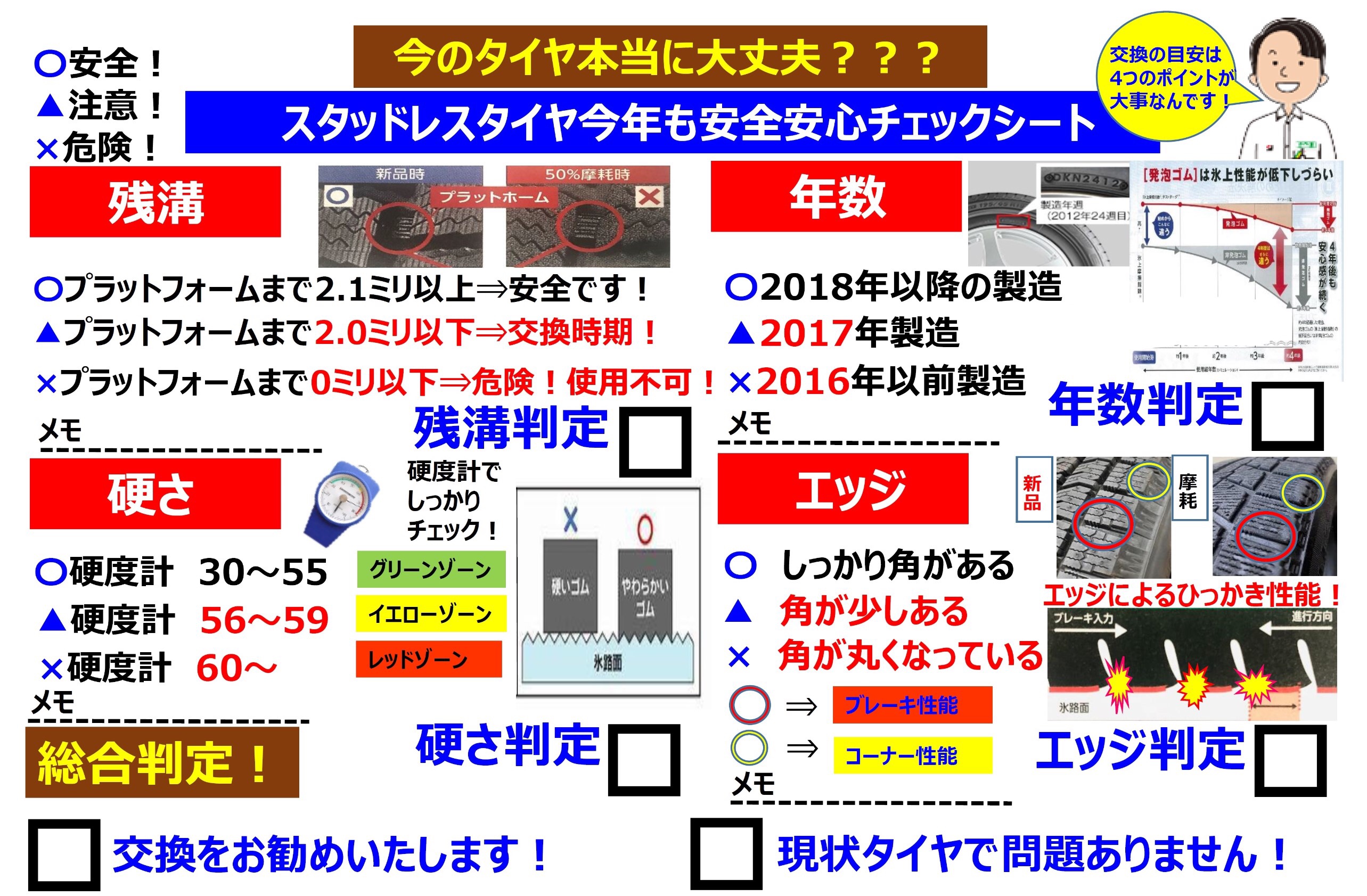 今お客様のスタッドレスの健康状態を!点検させて頂いております!