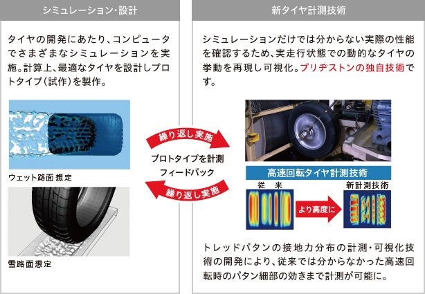 タイヤに求められる性能を最大限に高めるブリヂストン独自の徹底したシミュレート&計測技術。