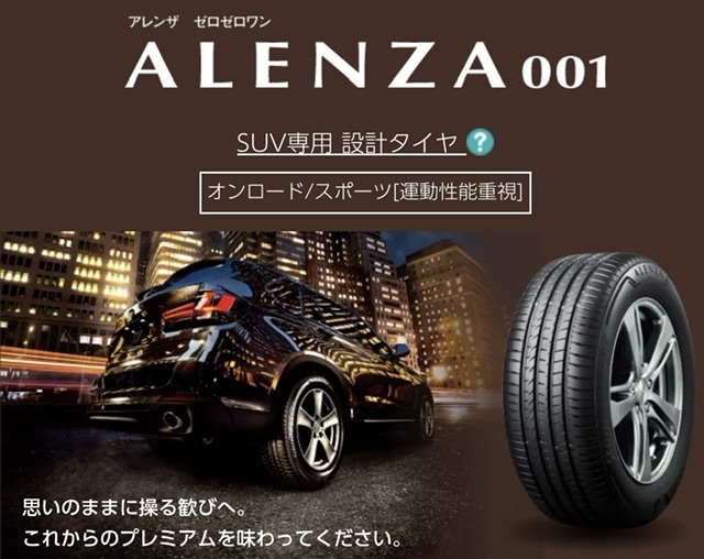 ↑ドライ&ウェットどちらでも運動性能高い SUV専用タイヤ ALENZA 001