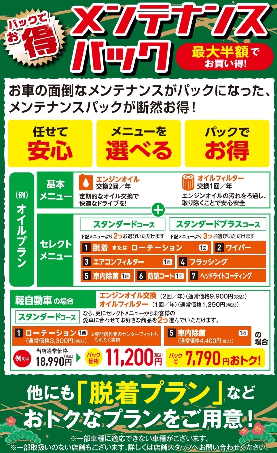 選べるメンテナンス商品をセットにしたお得なメンテナンスパックも