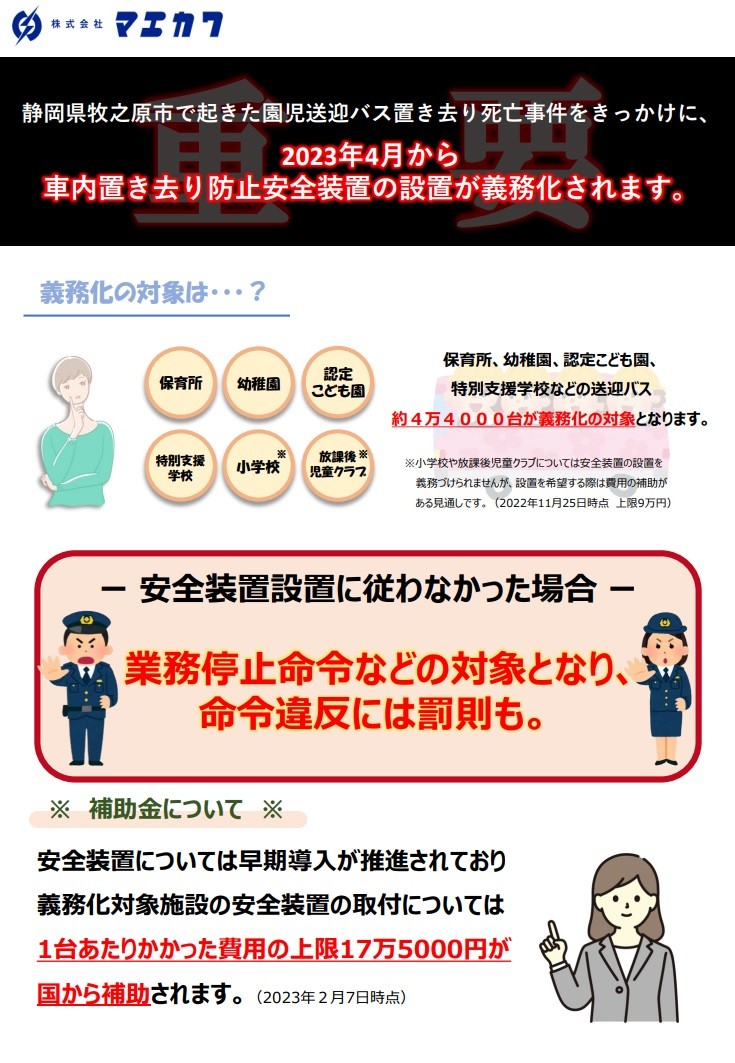 【園バス 】車内置き去り防止安全装置 取り扱い中!