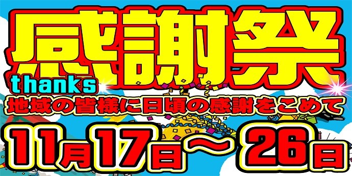 皆様の日頃のご利用に感謝を込めて 感謝祭 を開催しております。