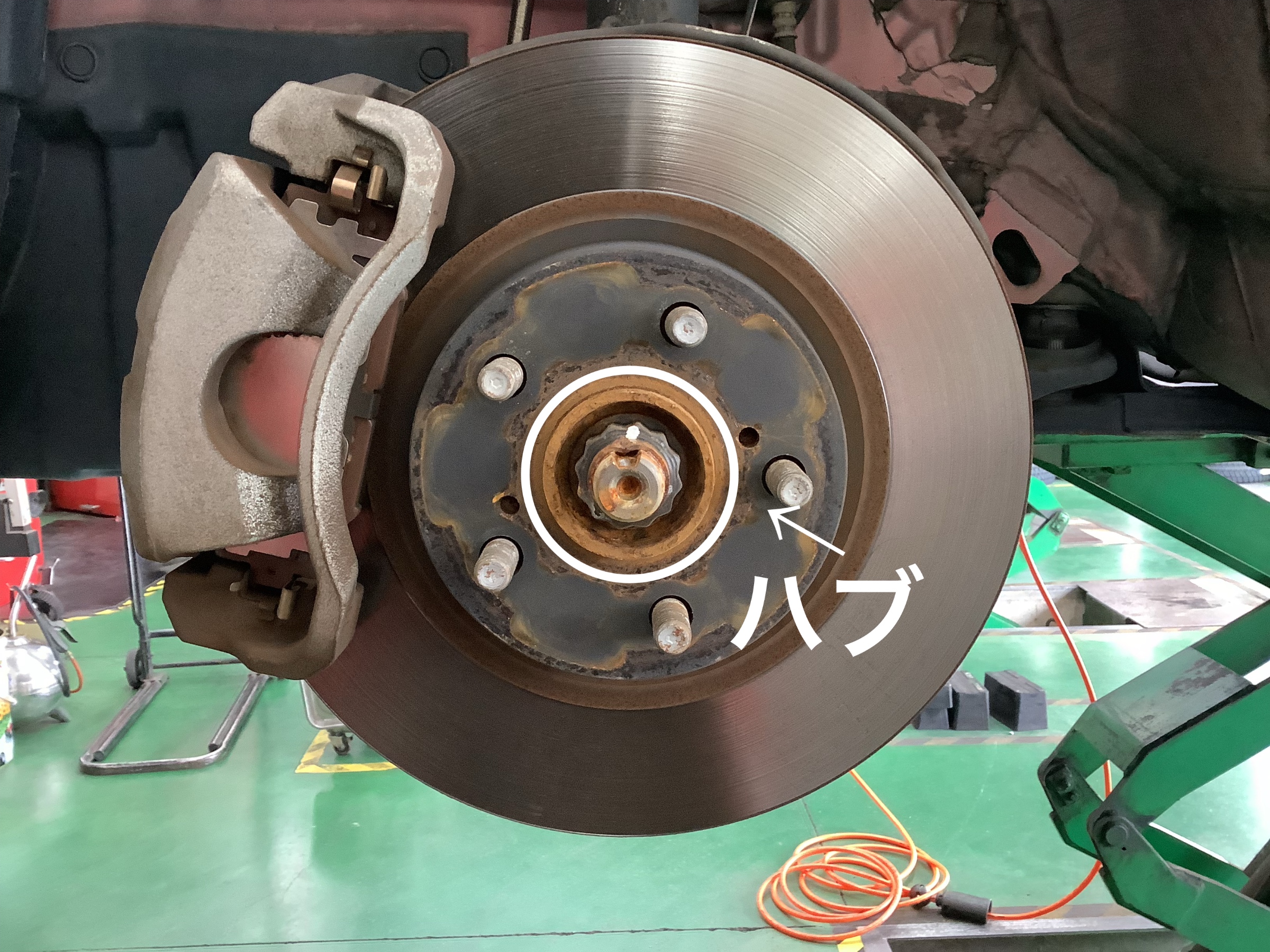 また、タイヤを外してみるとこのようにハブの部分が錆びています。
